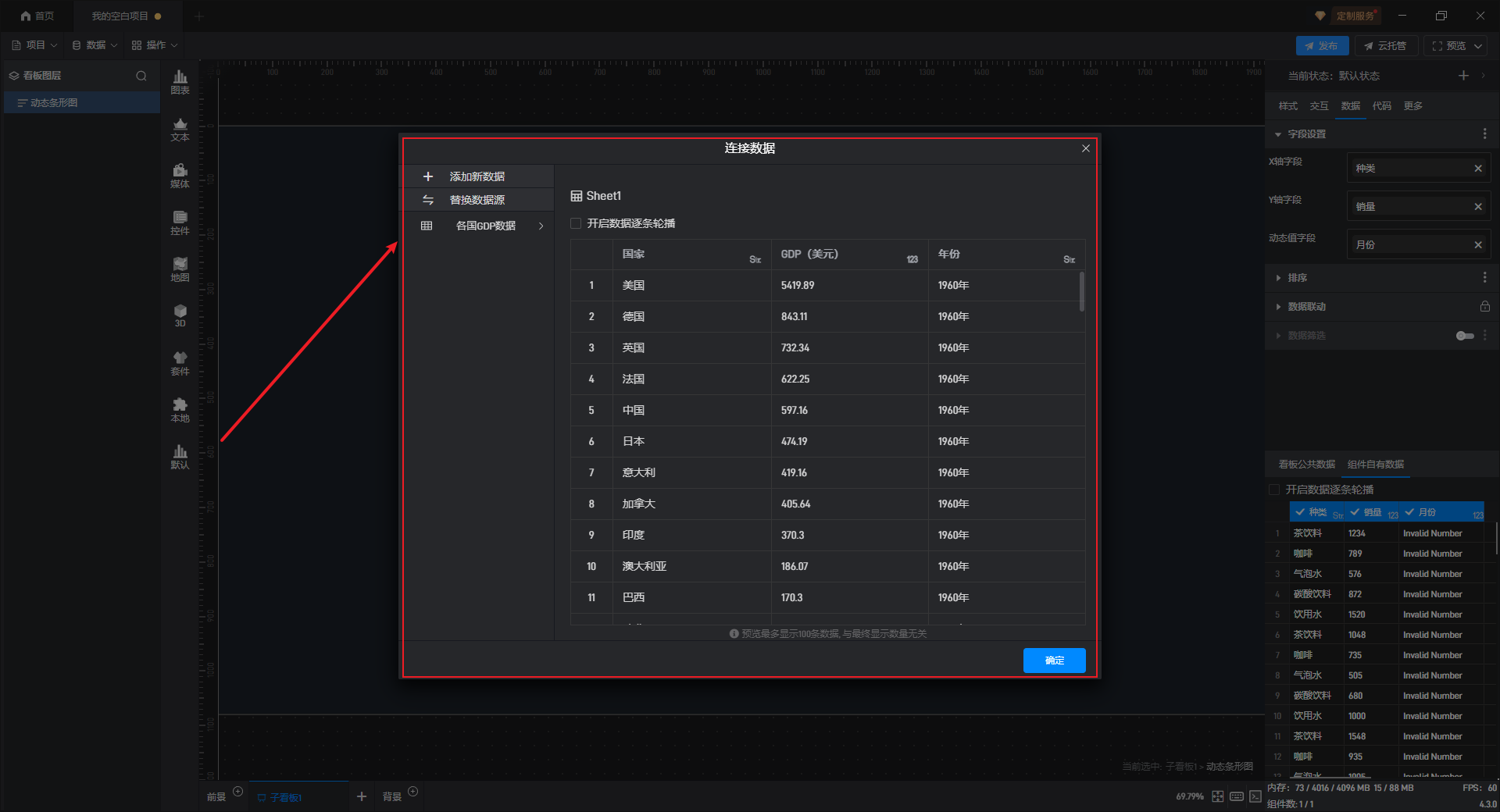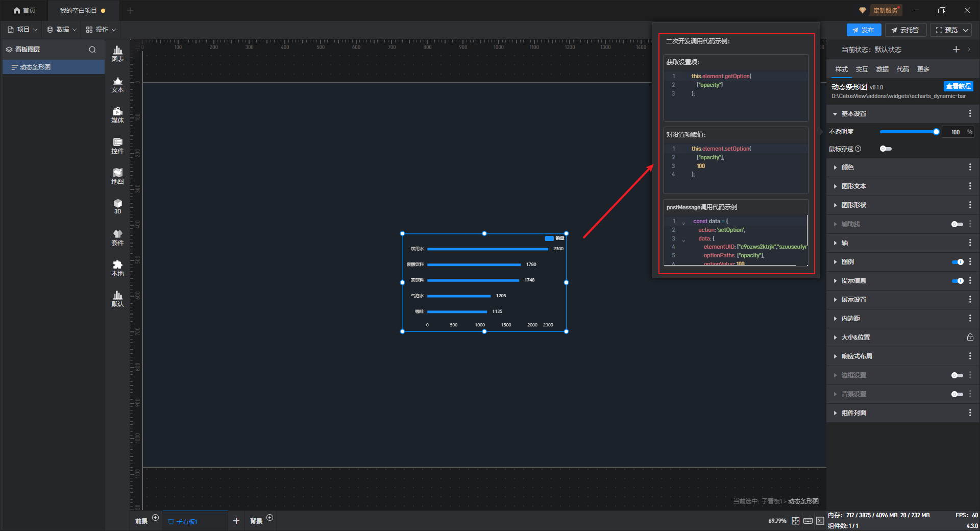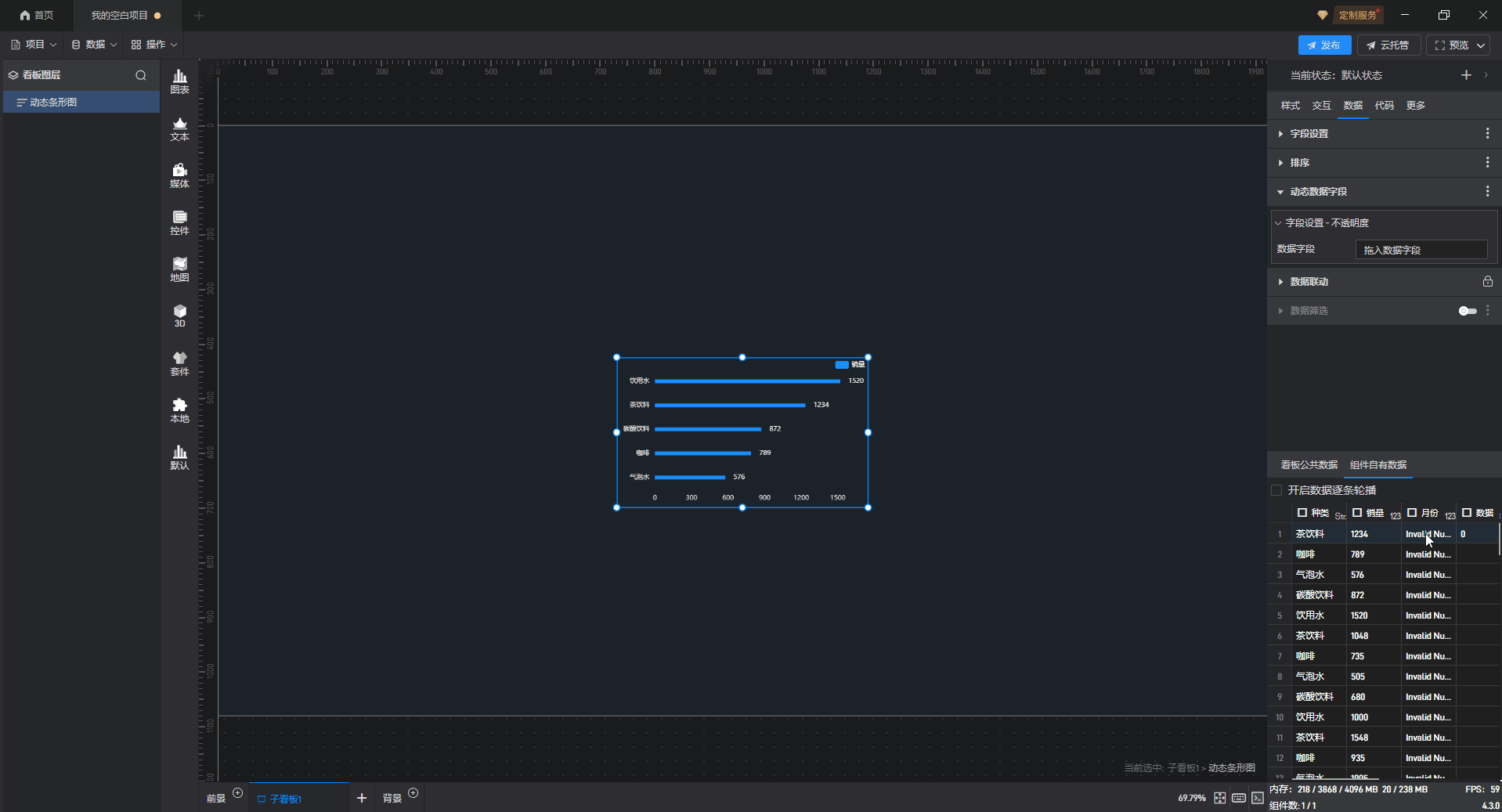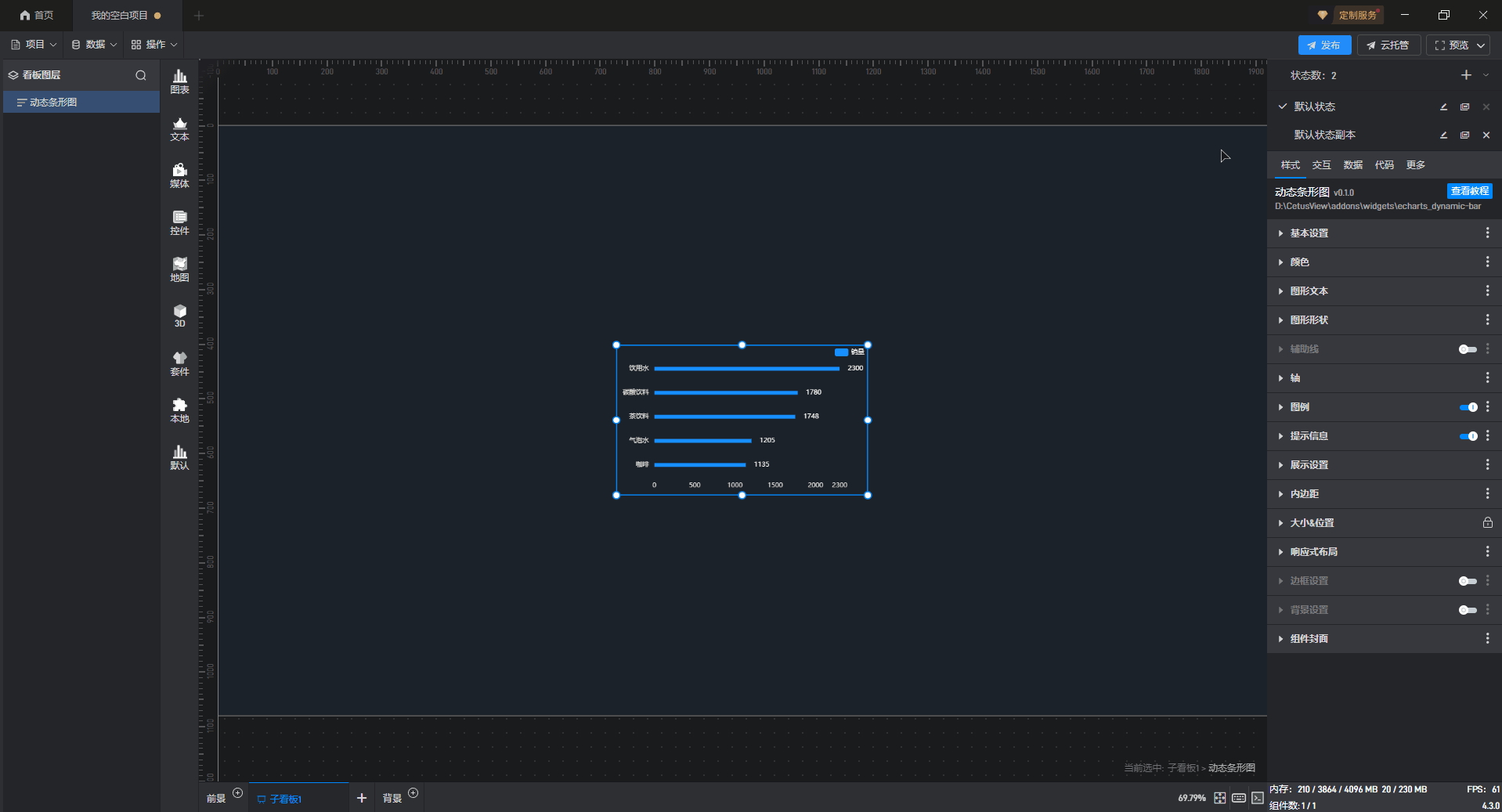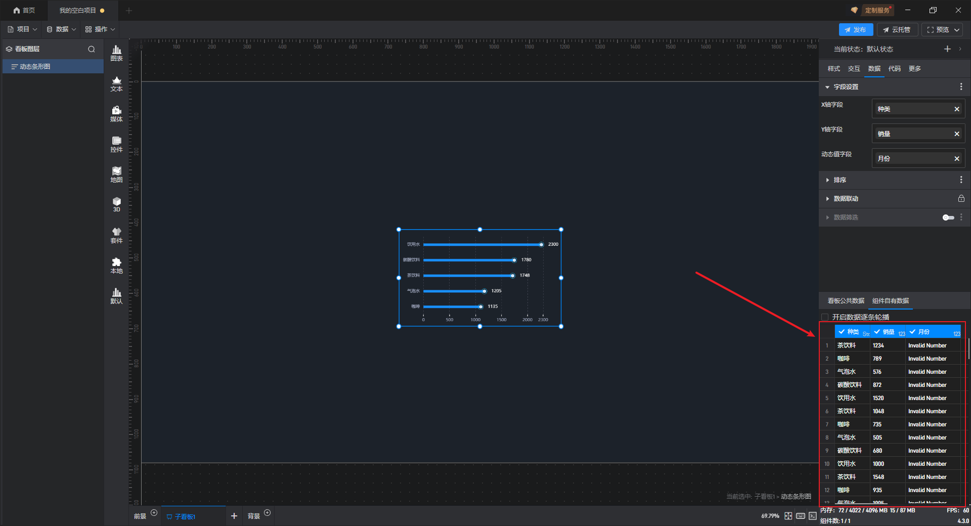 动态条形图是条形图组件的一种预设样式,包含了条形图组件所有的功能。