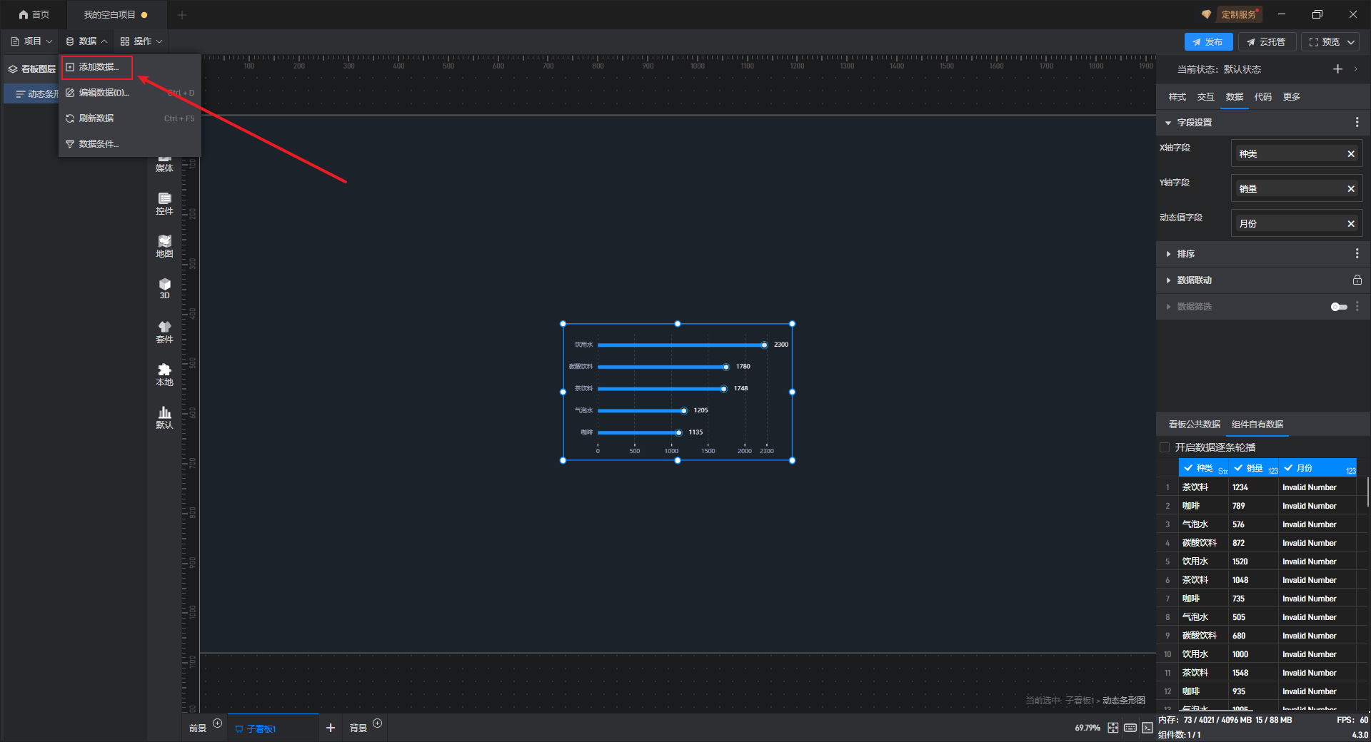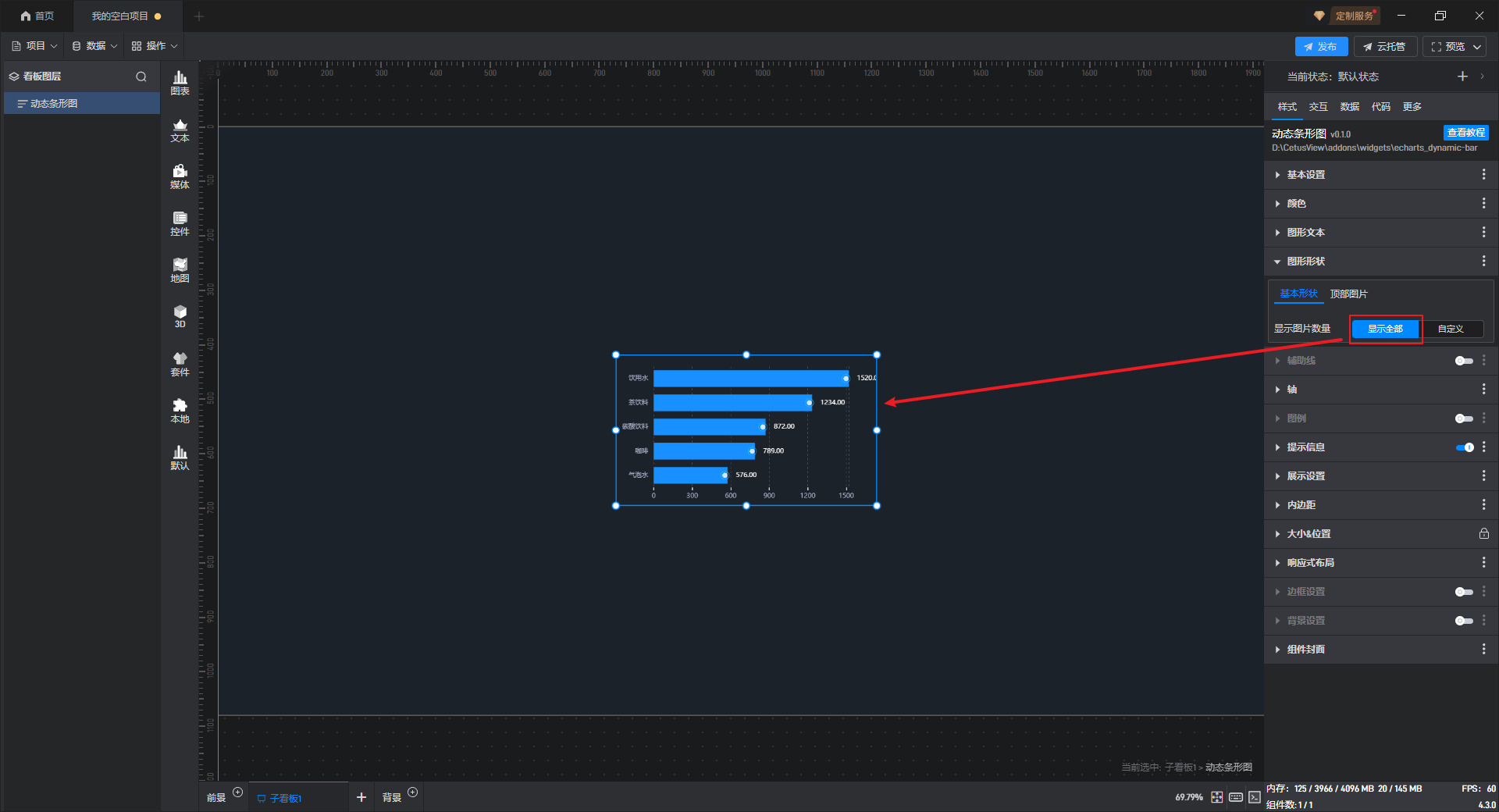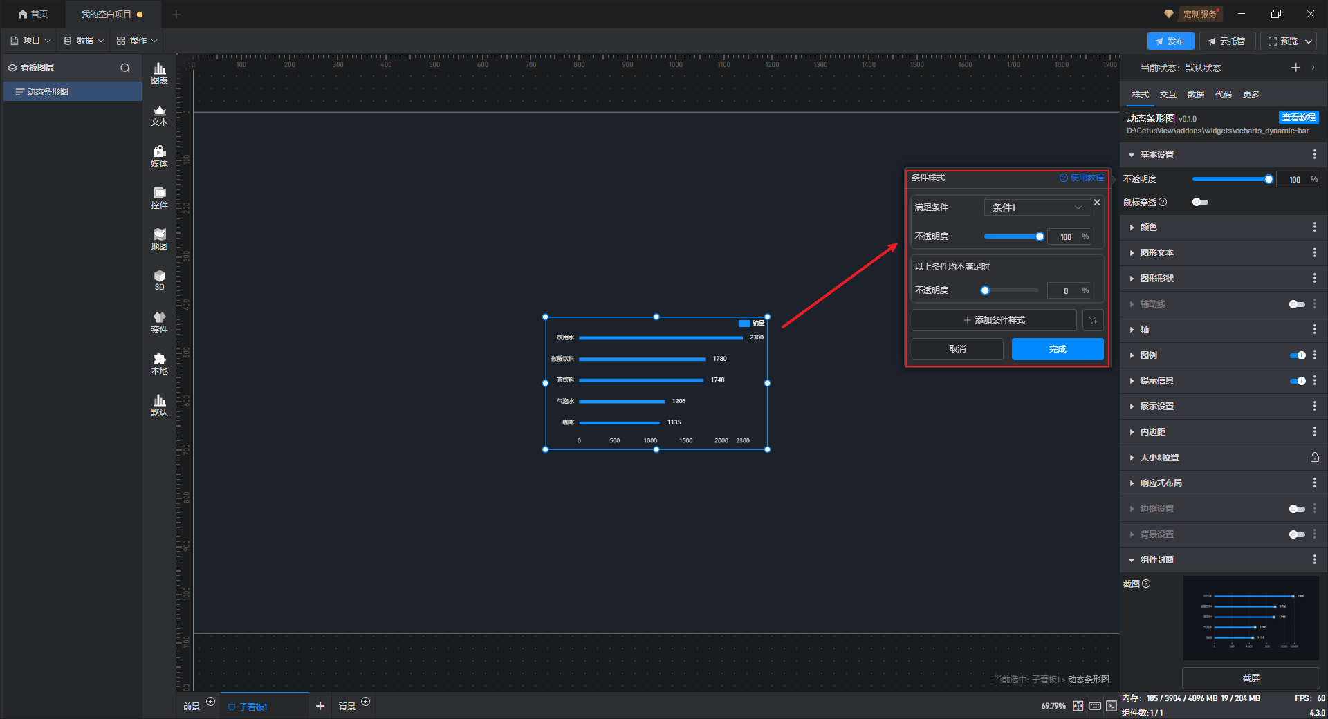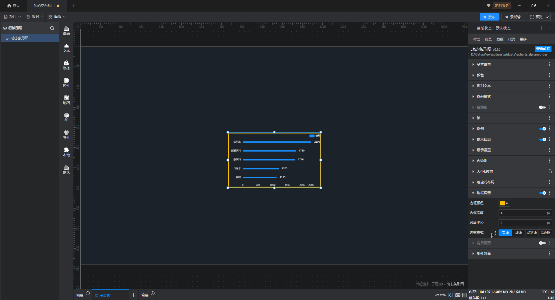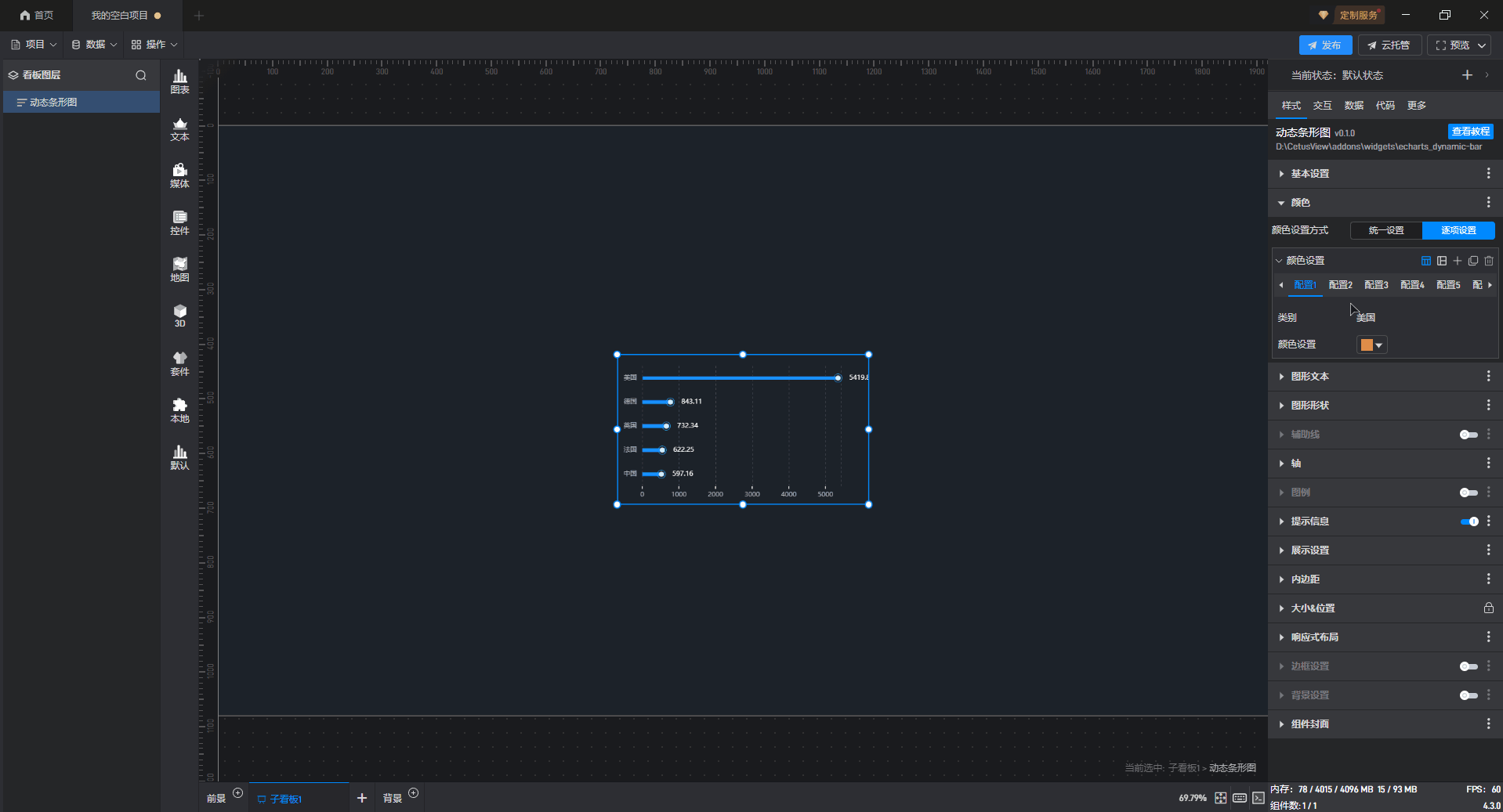 动态条形图是条形图组件的一种预设样式,包含了条形图组件所有的功能。