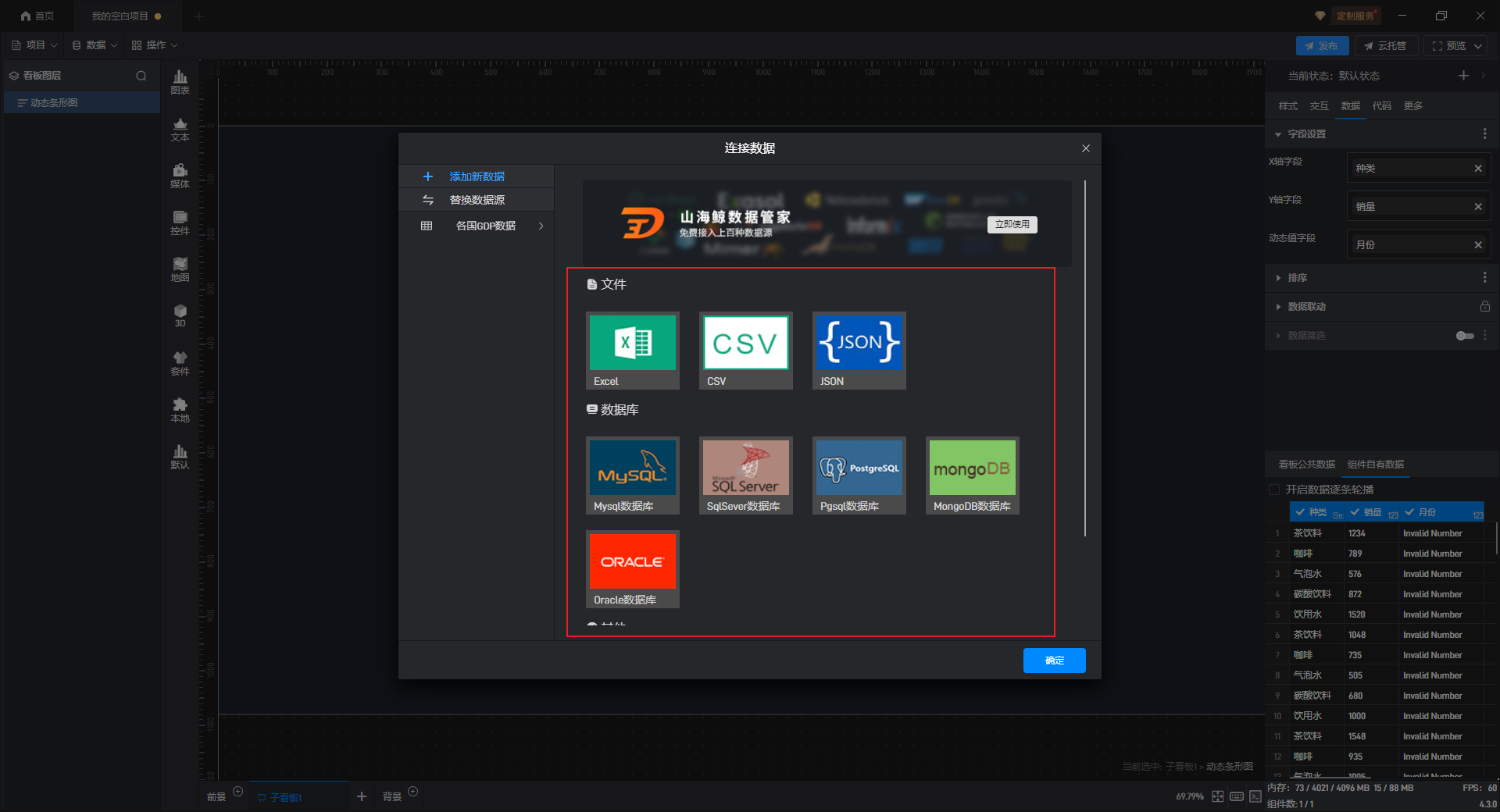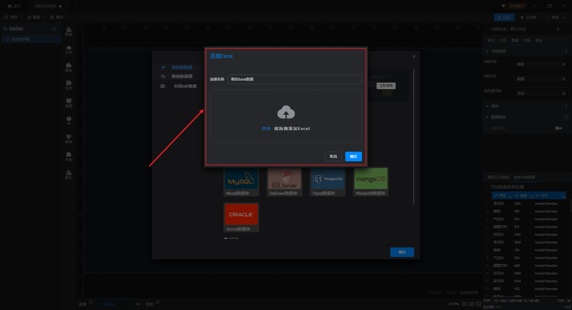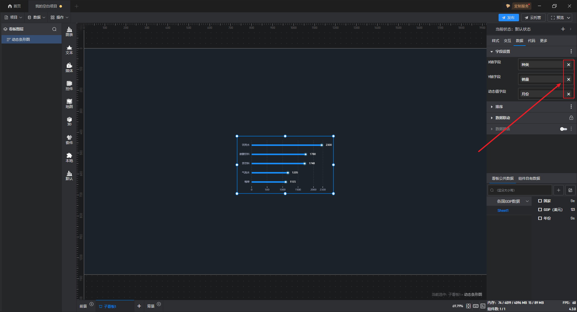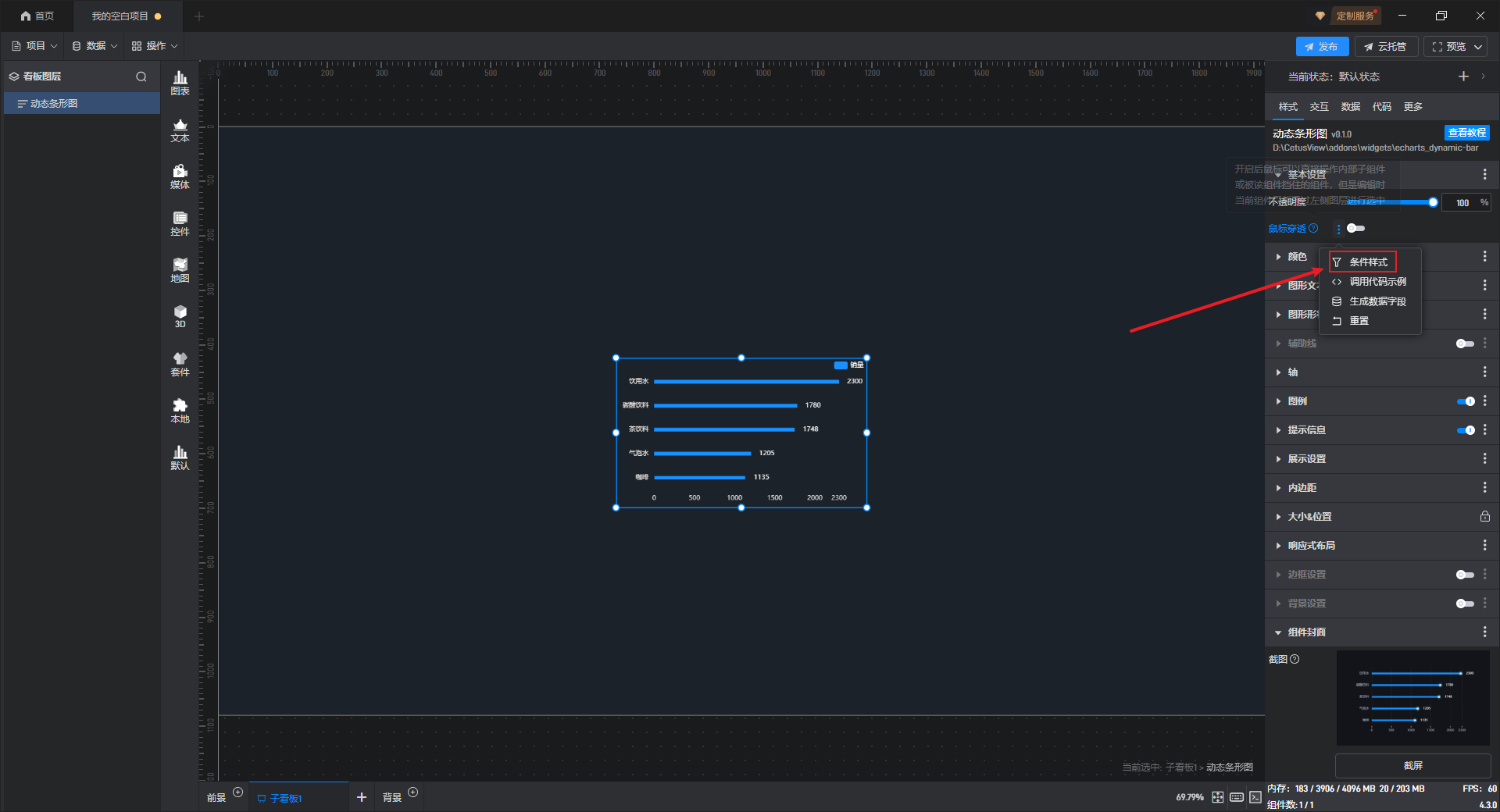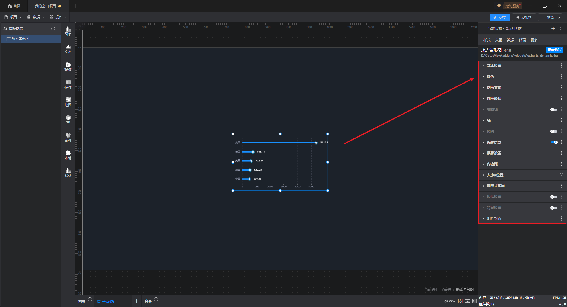 动态条形图是条形图组件的一种预设样式,包含了条形图组件所有的功能。