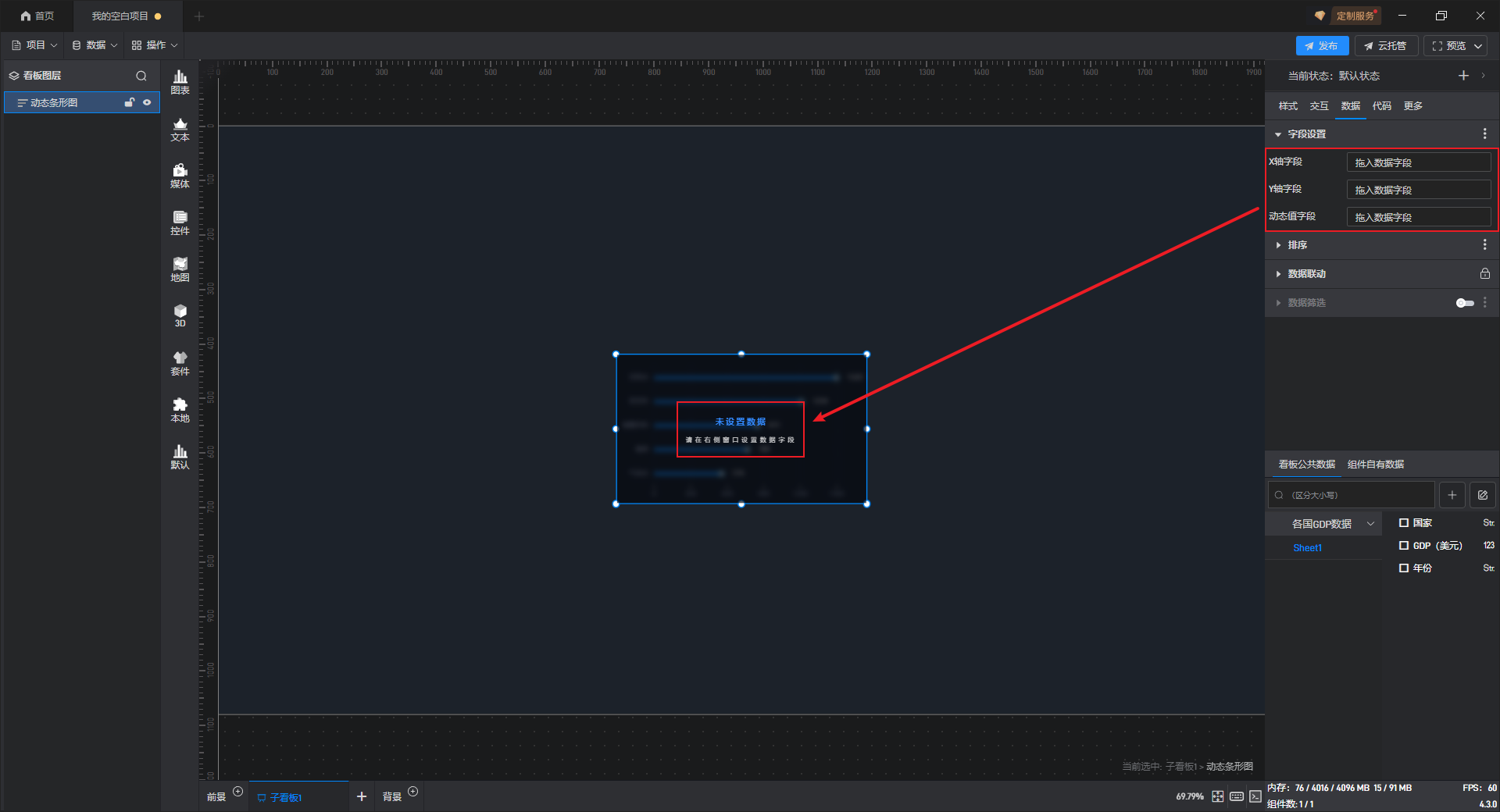 点击后,该设置项就会出现“请设置数据字段”的提示。