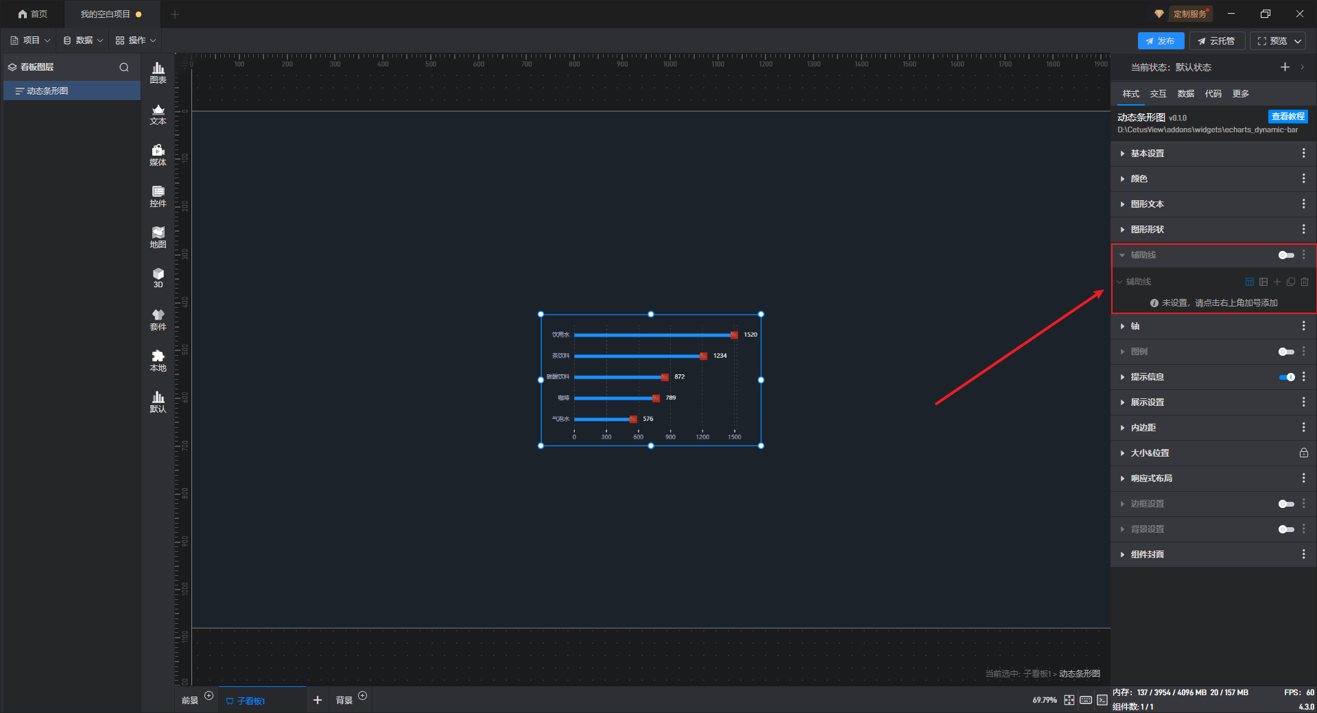 开启辅助线按钮后,可以添加辅助线,并进行设置。