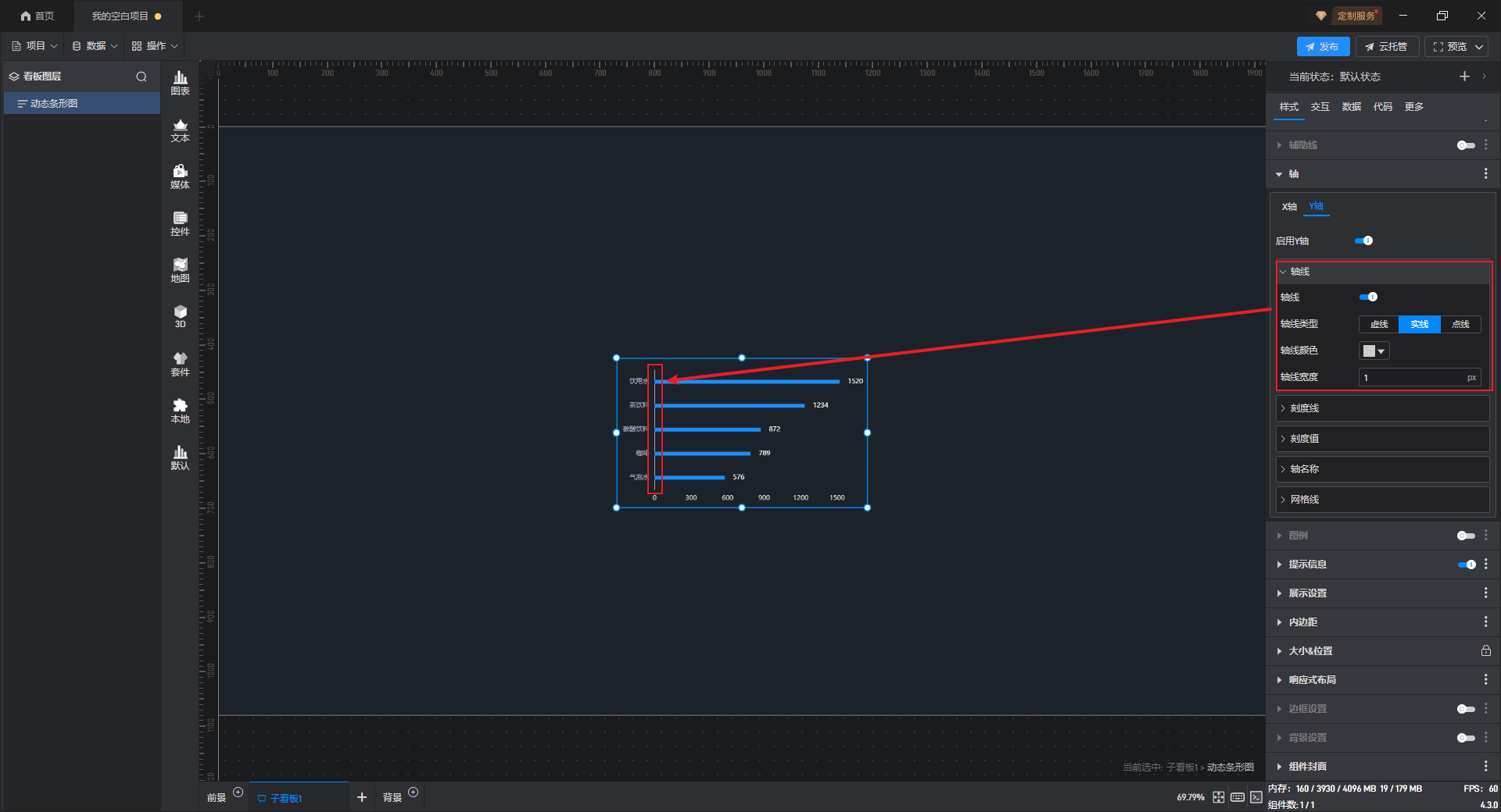 | 轴线宽度 | 自定义输入 X 轴轴线的宽度,默认宽度为“1px”。 |