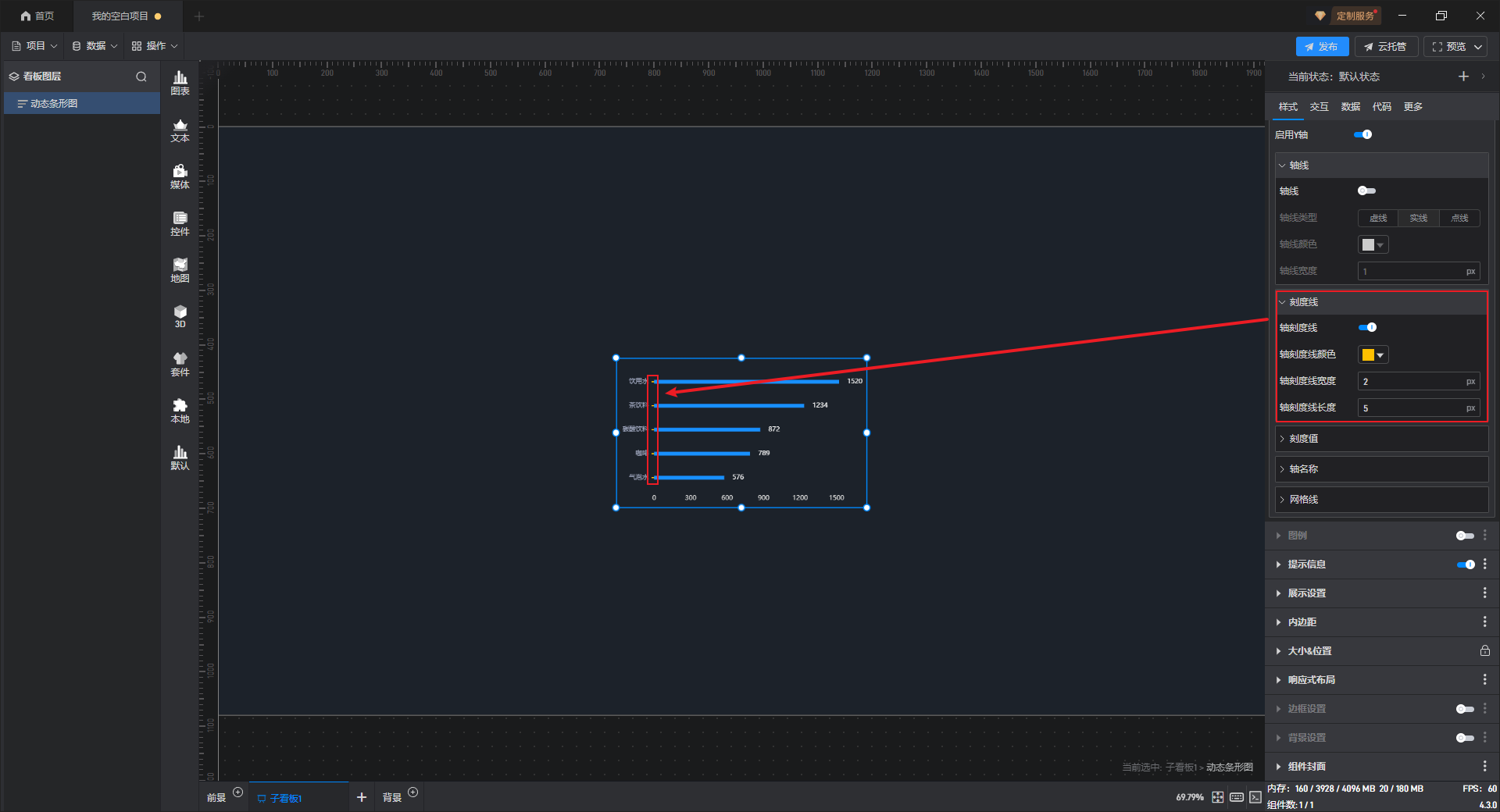 | 轴刻度线长度 | 自定义输入 X 轴刻度线的长度,默认长度为“5px”。 |