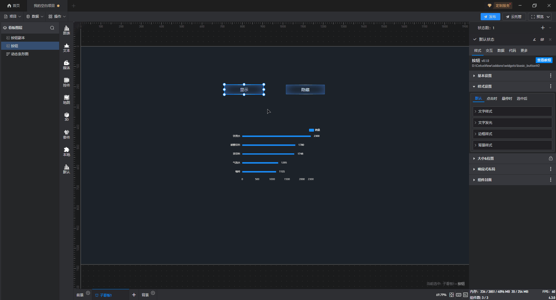 在组件库中,我们给大家提供了丰富的组件,且为了降低大家在项目制作过程中的设计复杂度,对这些组件预设了一些样式,但我们仍可以在此基础上对其样式进行修改。