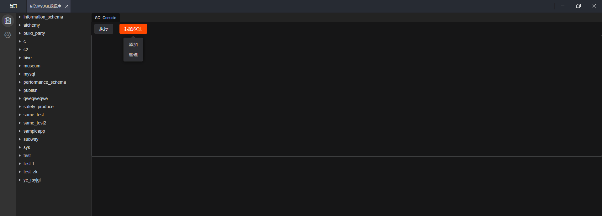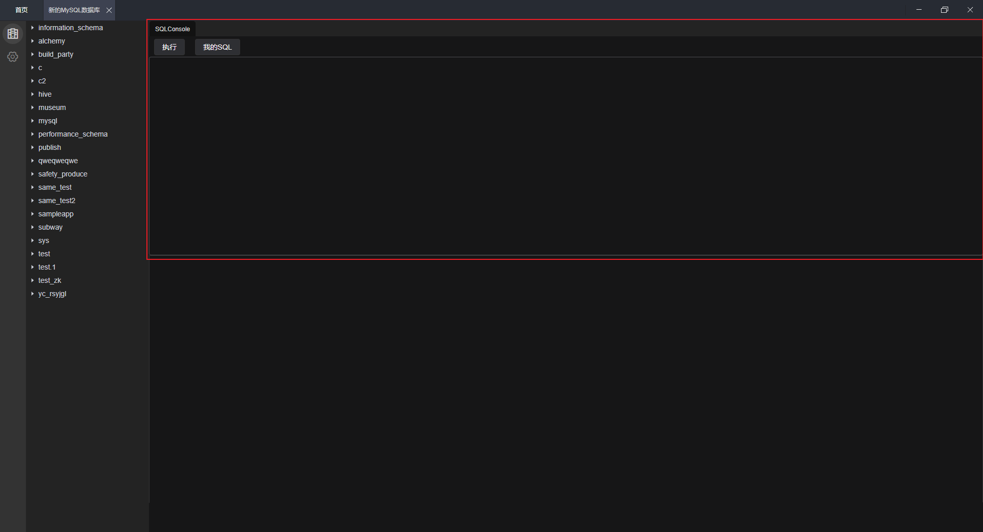 在接入一个 MySQL 数据库后,可以看到界面右侧的SQLConsole 功能区域。