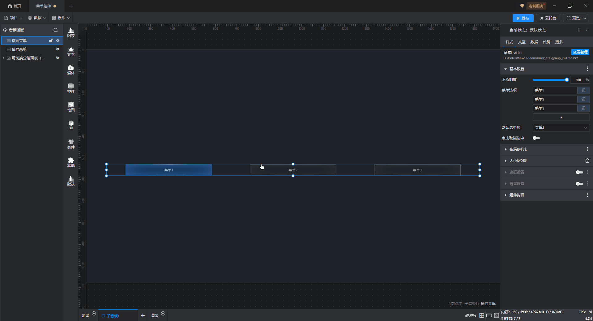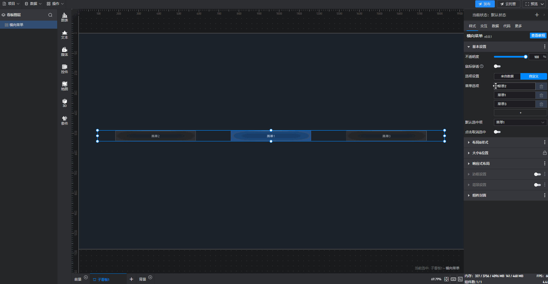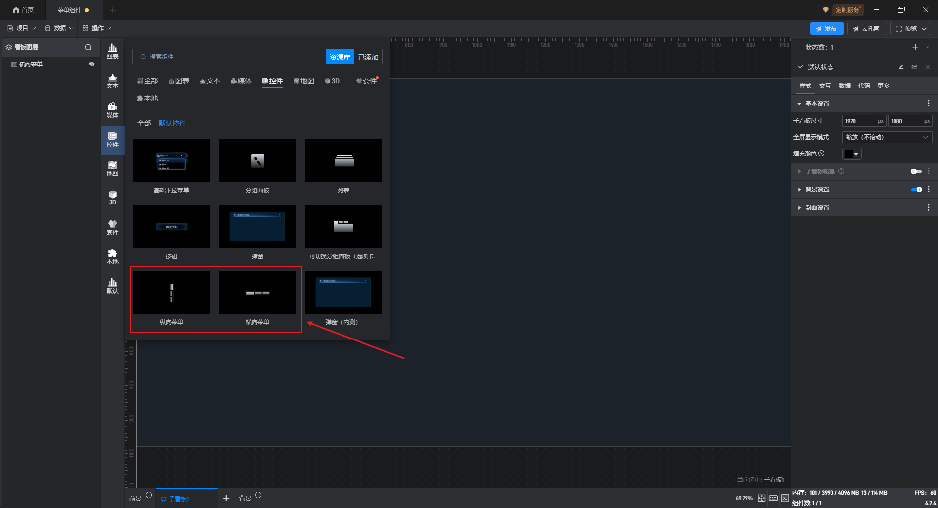 横向菜单、纵向菜单都是菜单的一种预设样式,这些预设的样式主要是组件图形的形状,但是本质上这些组件都是菜单。