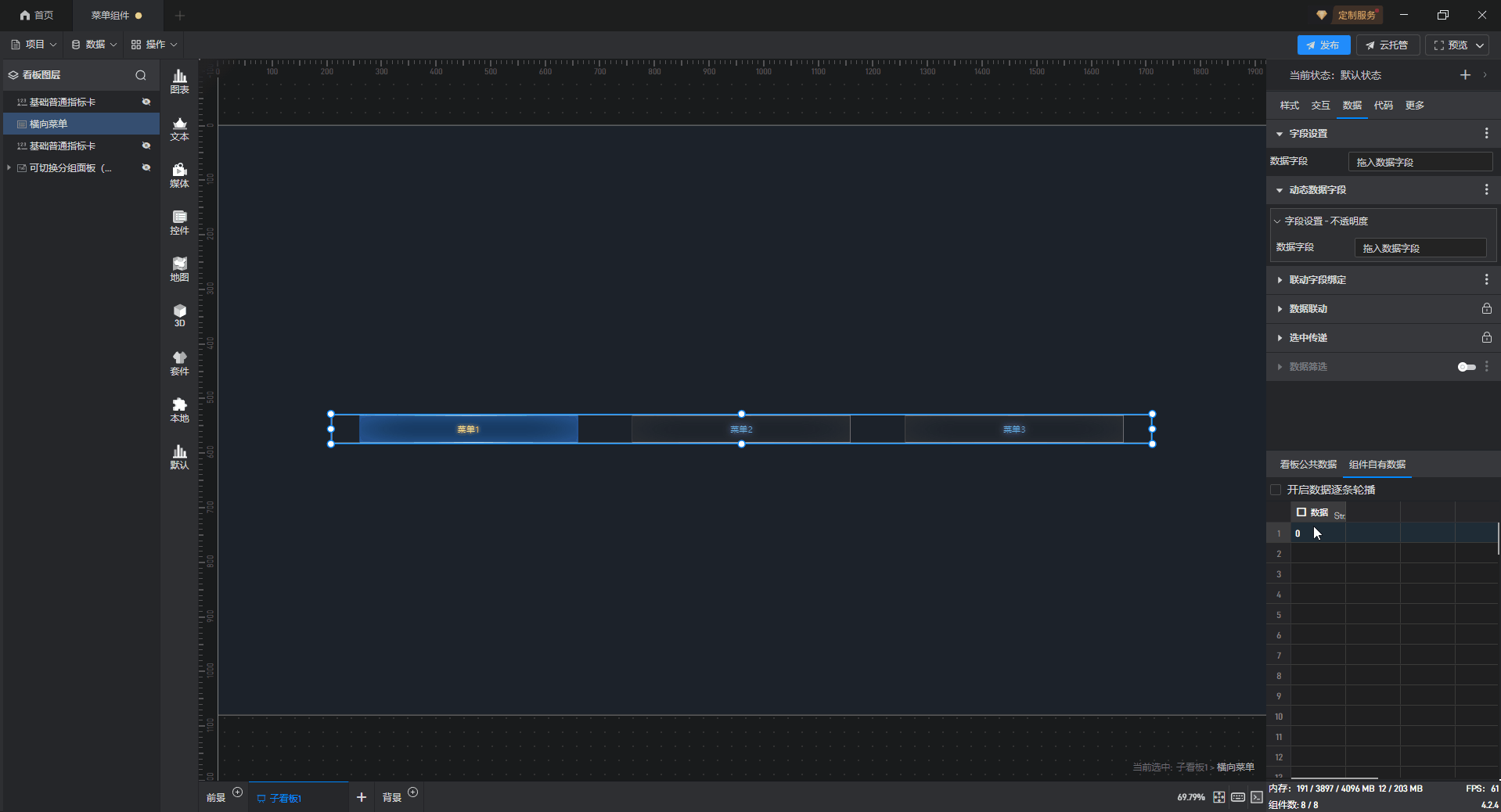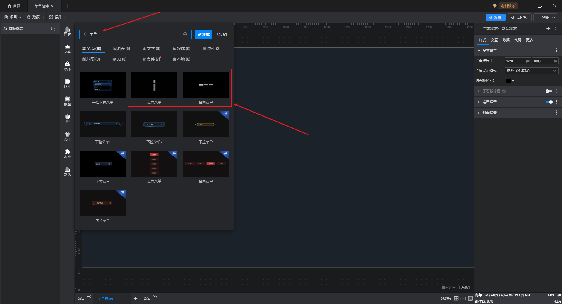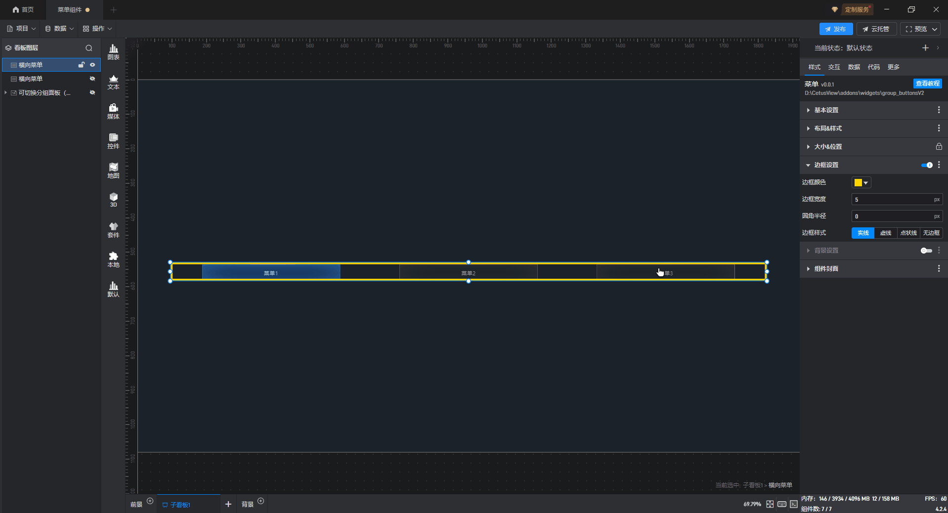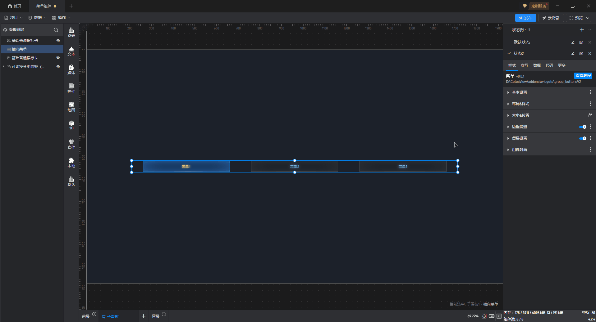横向菜单、纵向菜单都是菜单的一种预设样式,这些预设的样式主要是组件图形的形状,但是本质上这些组件都是菜单。