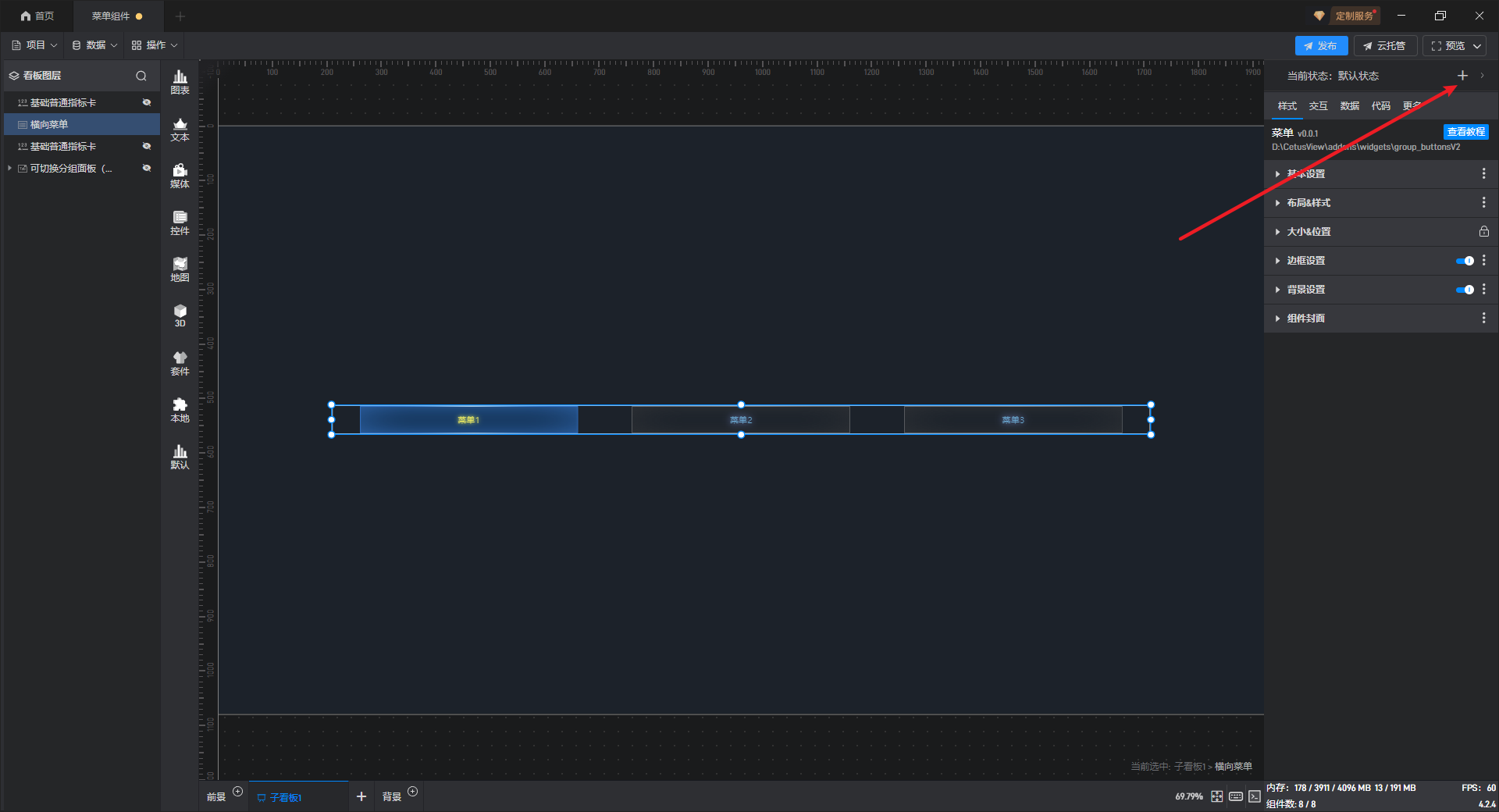 点击右上角的“+”可以添加一个新的组件状态。