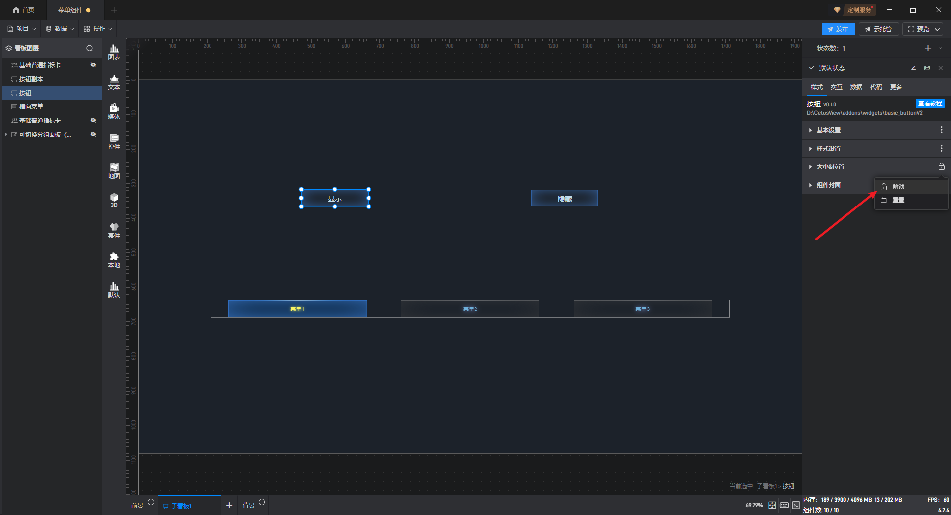 菜单组件 按钮样式设置,如下图所示: