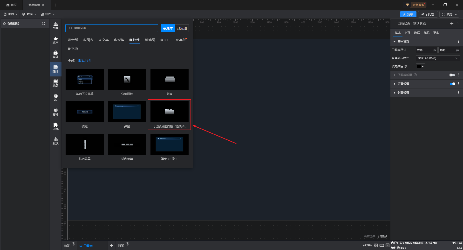 组件默认没有背景颜色,如果需要设置背景颜色,需要先开启“背景设置”项按钮。