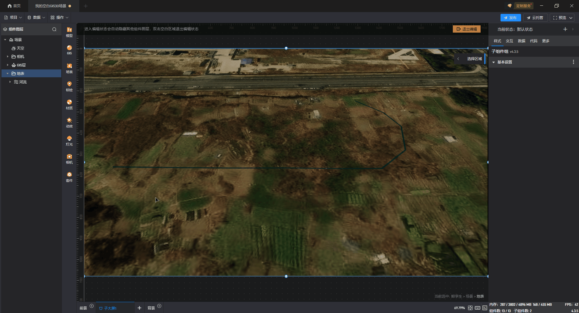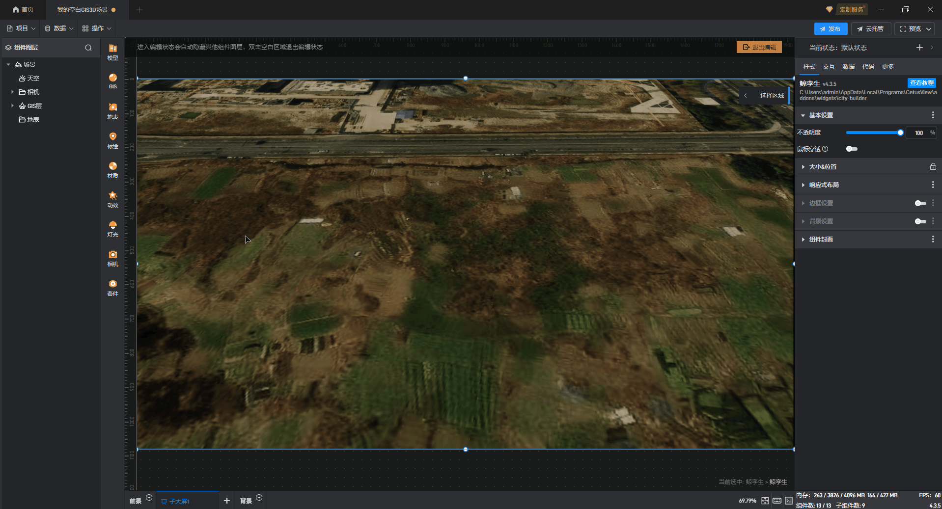 在项目中双击鼠标左键进入鲸孪生组件的编辑模式。