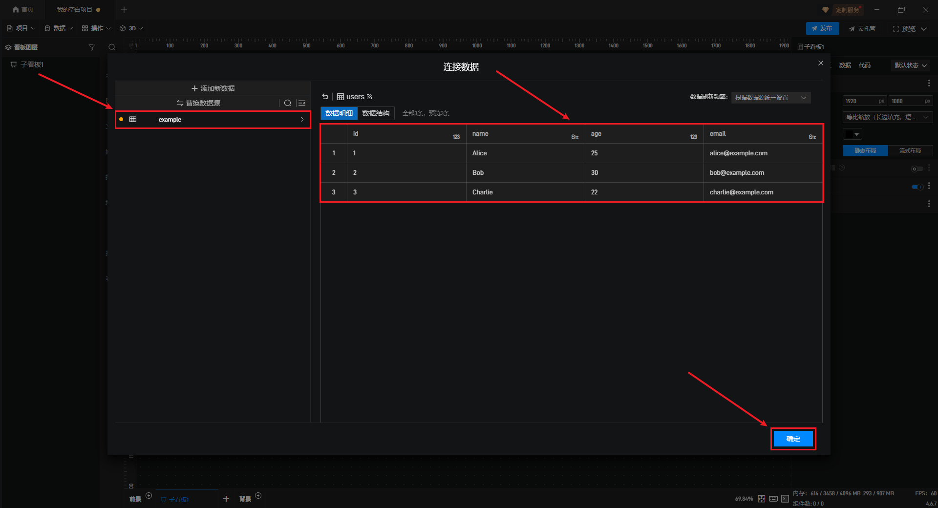 软件会自动加载数据表中的数据并展示在界面中,确认没问题后点击“确定”按钮,一个SQLite的数据源便添加成功了。