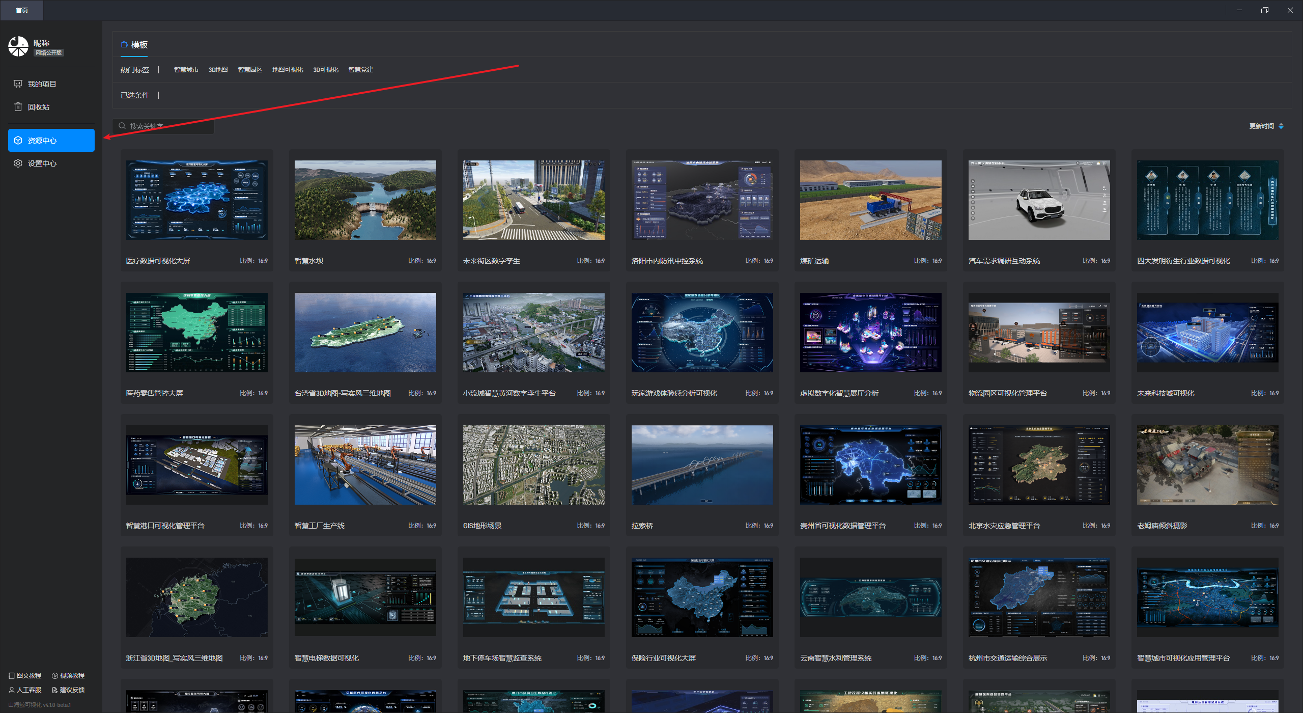 山海鲸可视化提供了大量的大屏看板的模板资源,所以我们可以基于模板来制作项目。
