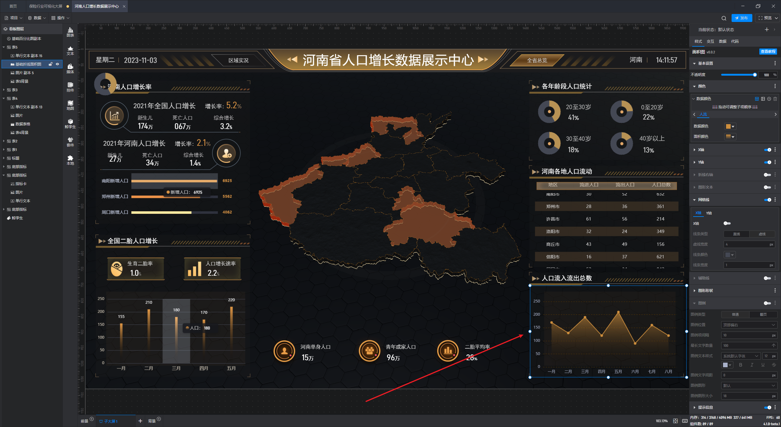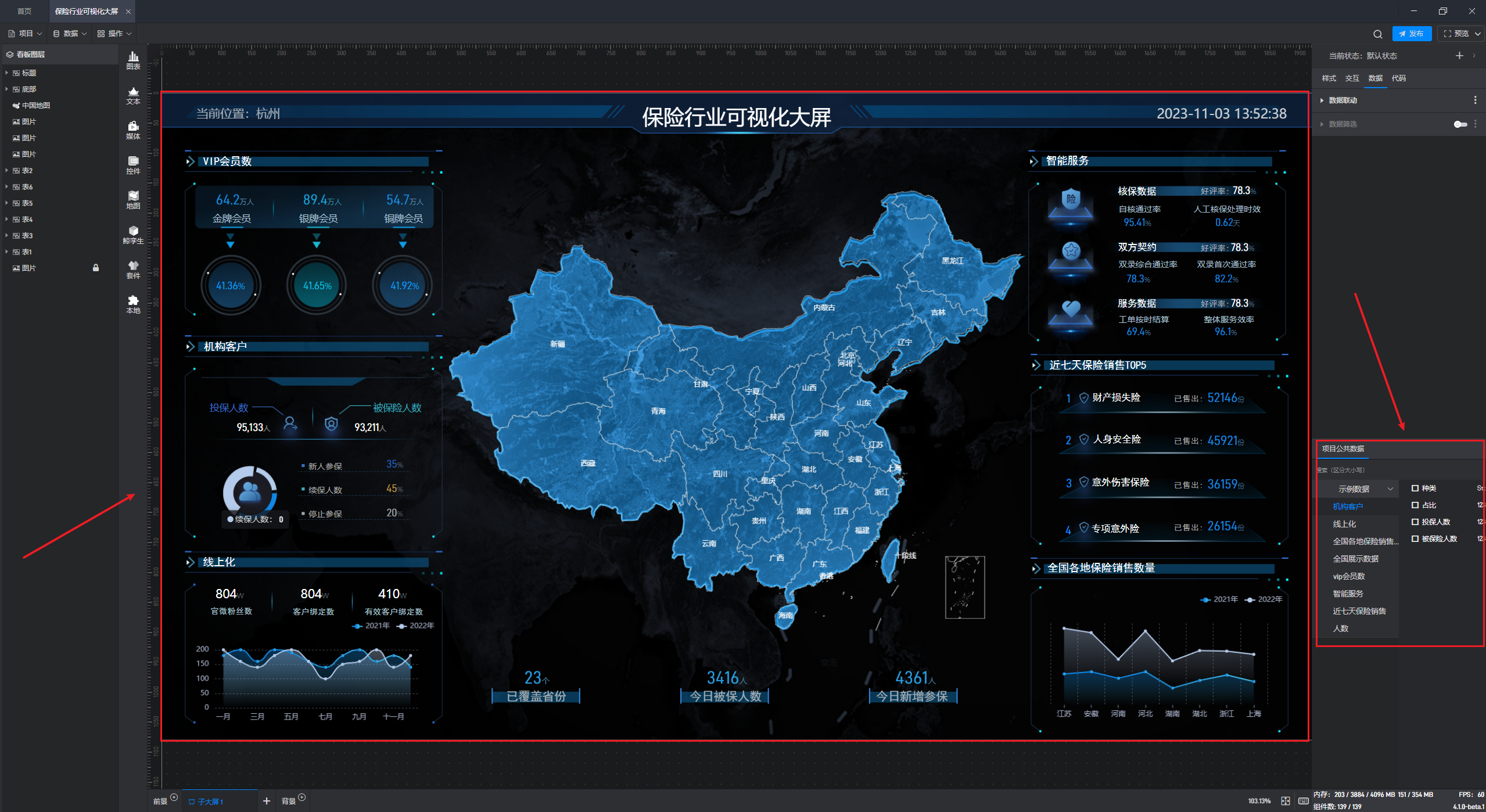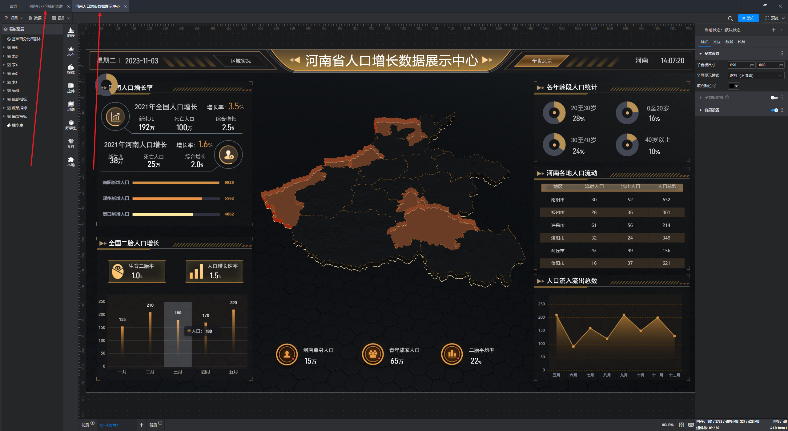 每个模板都自带一套页面内容和 Excel 数据源,我们可以在此基础上进行修改。