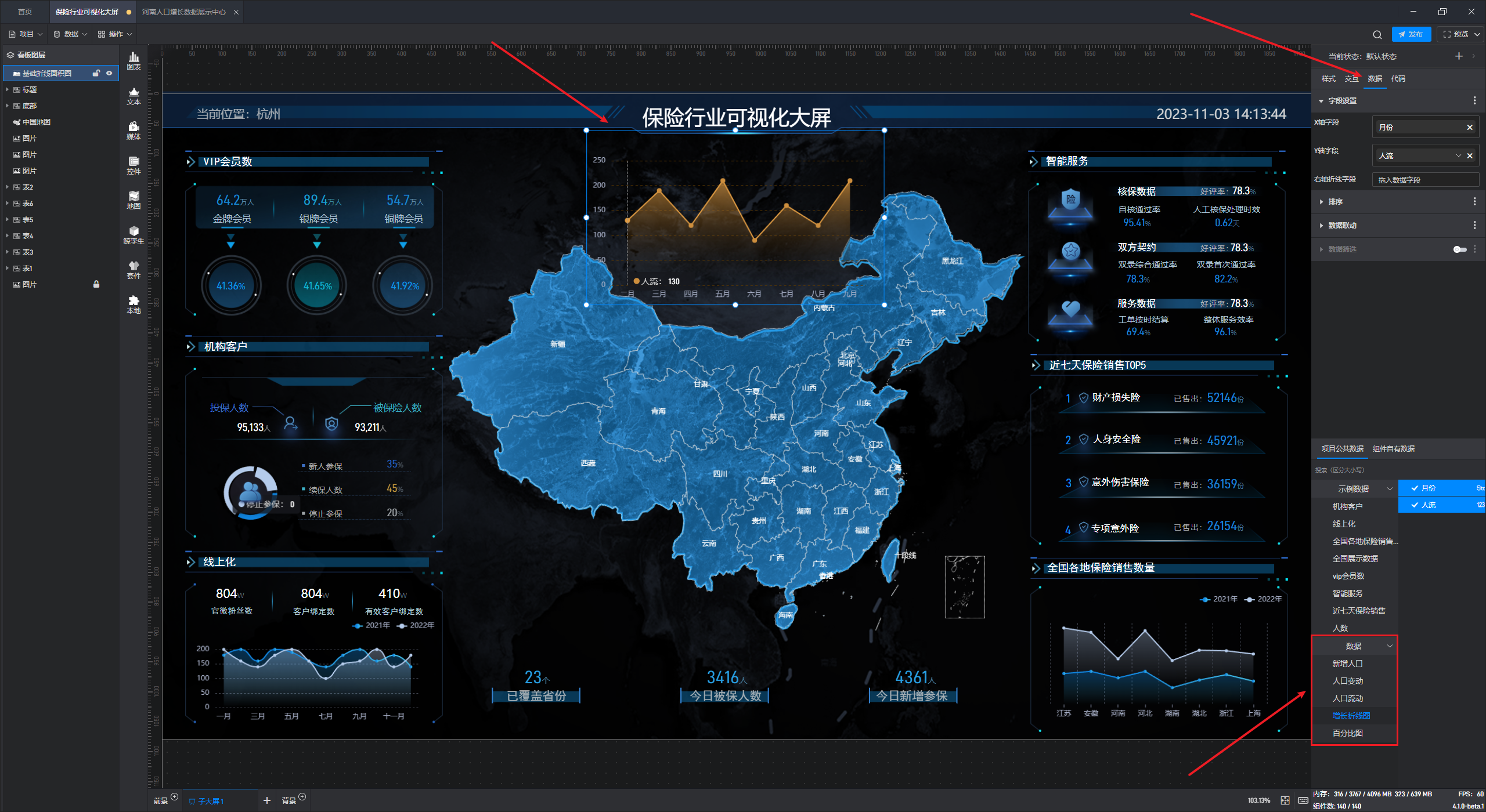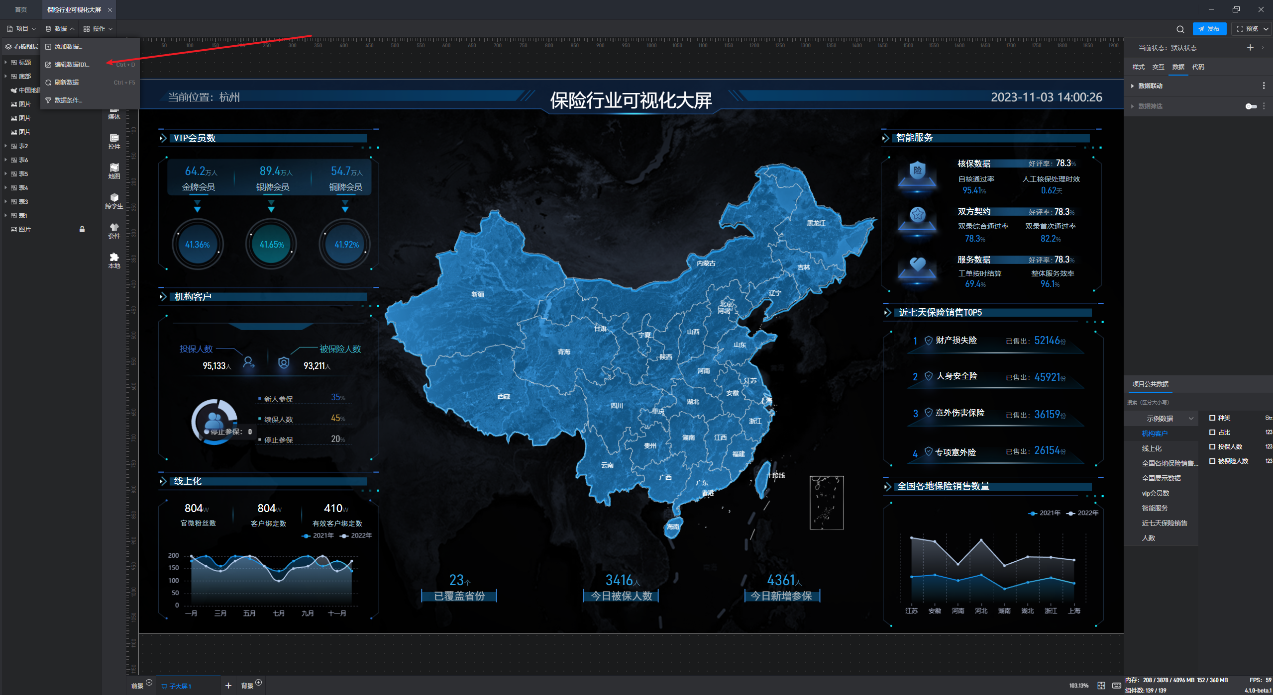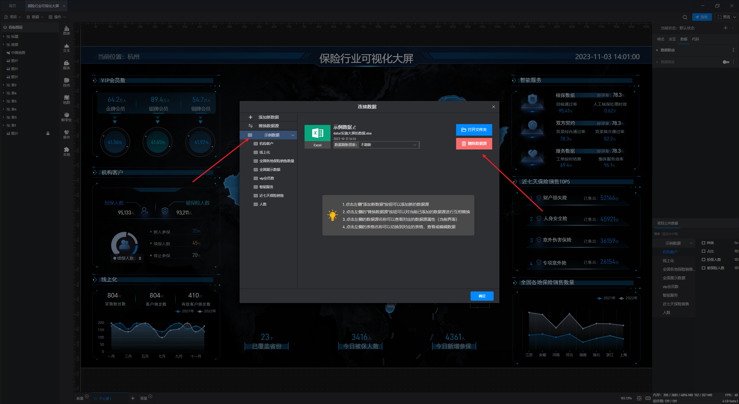 如果我们需要使用本地其他数据源,可以先删除模板数据源,然后添加本地数据源,再将数据绑定到组件上。