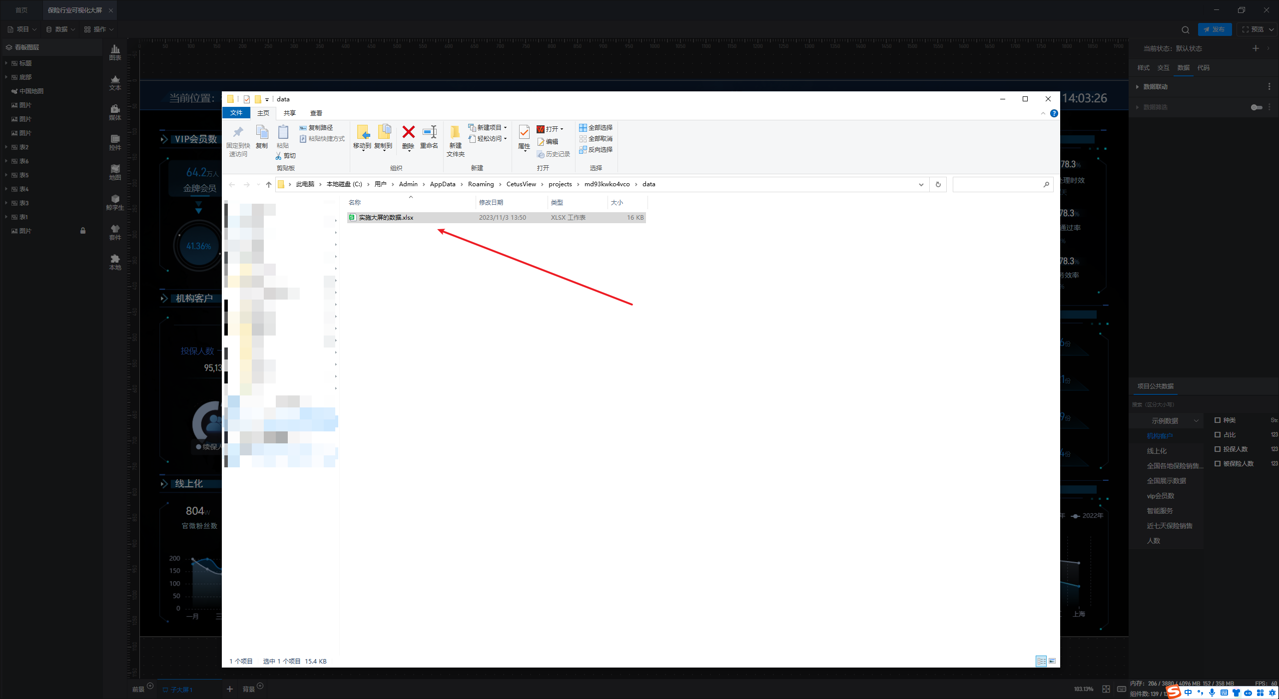系统会自动打开项目文件夹中的数据文件夹,在这里我们可以看到对应的 Excel 数据文件,然后我们可以打开这个文件进行修改。
