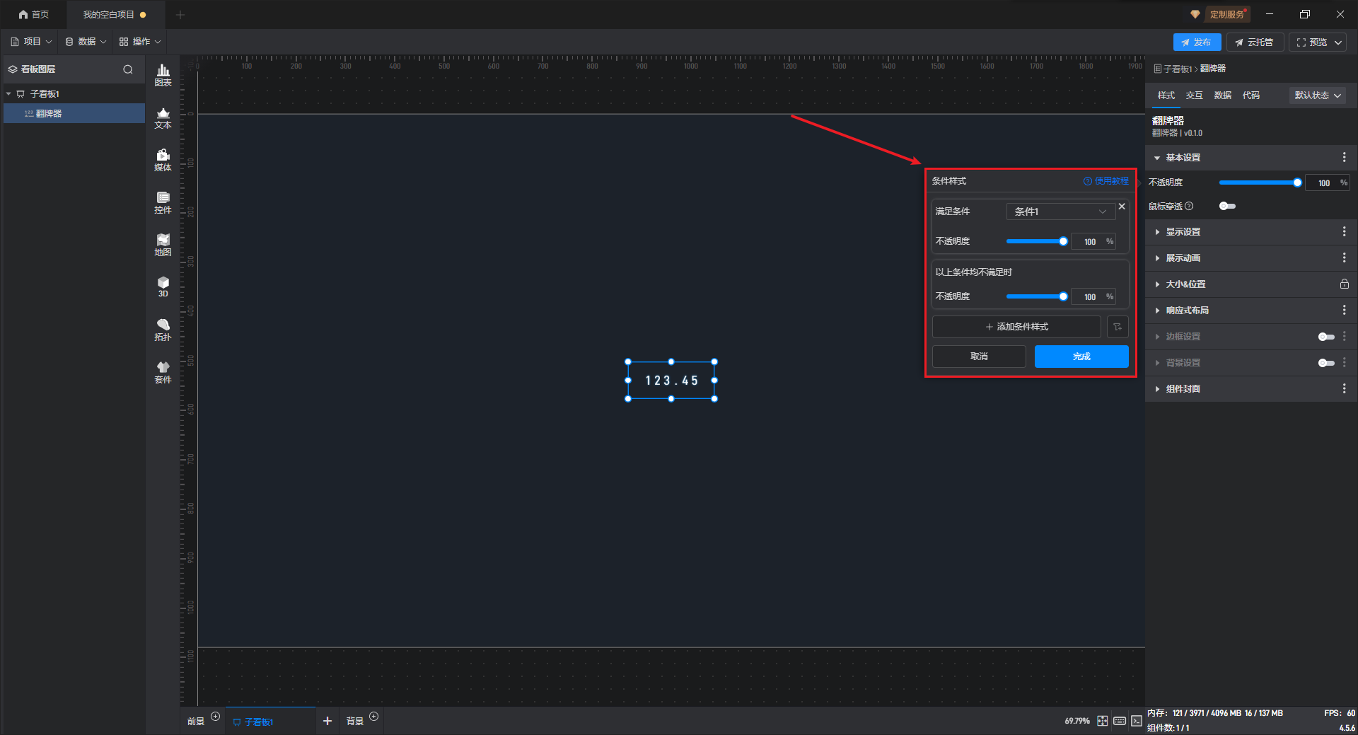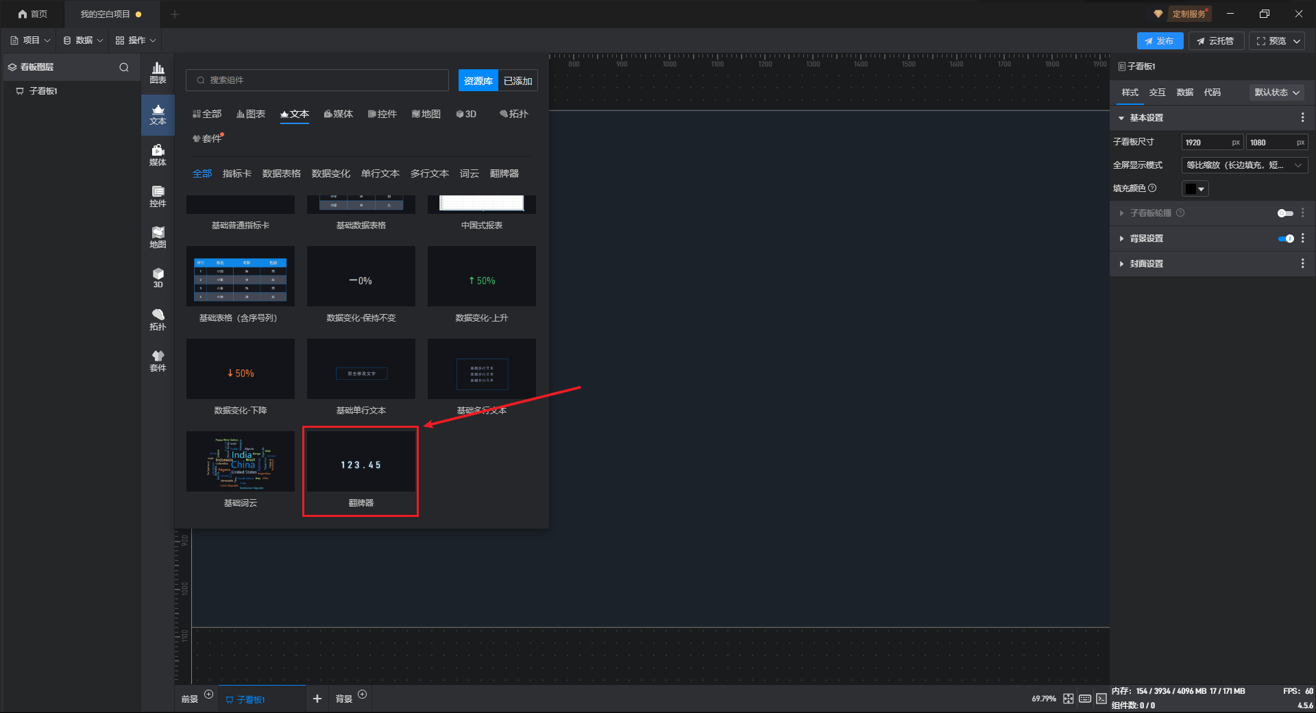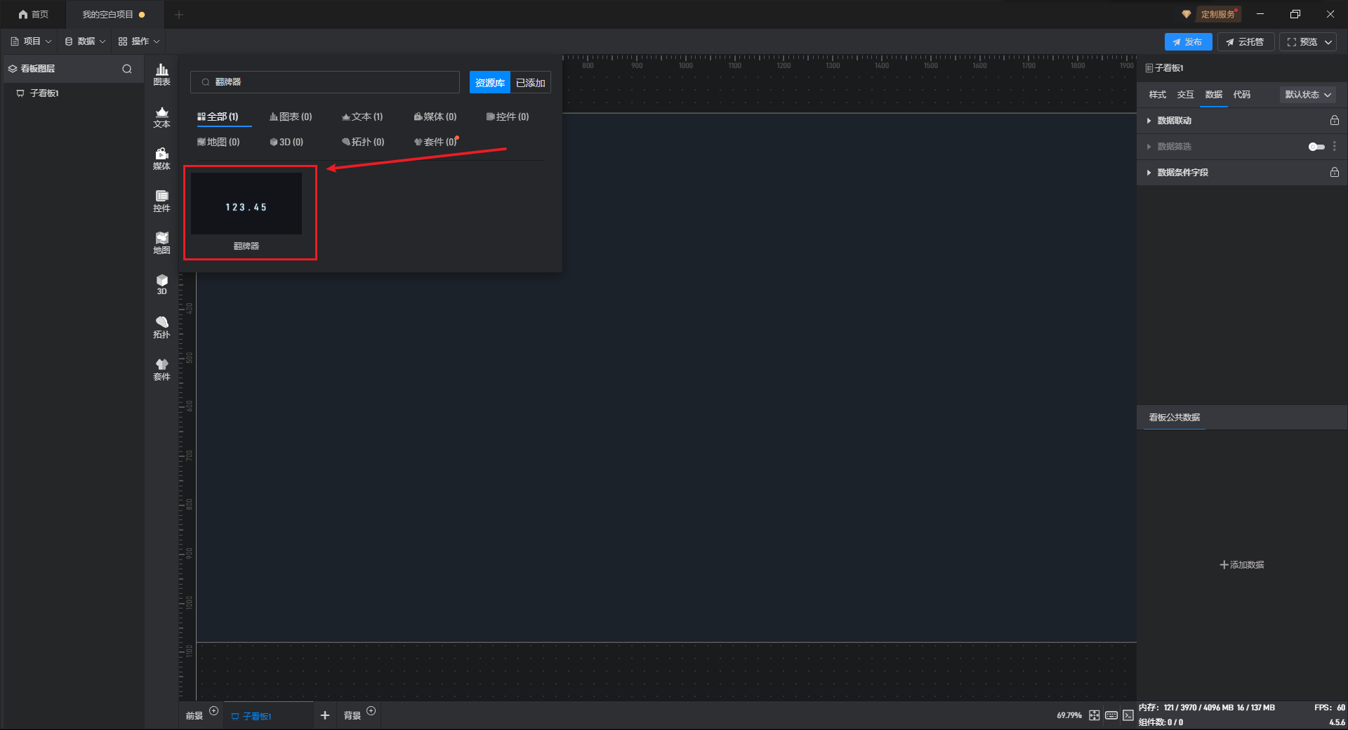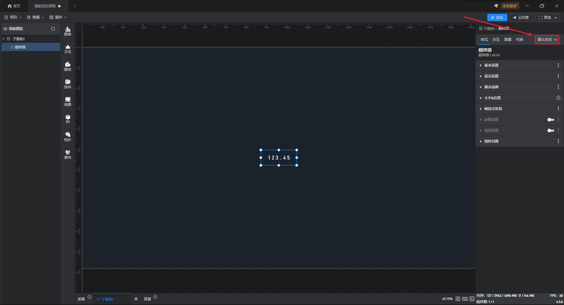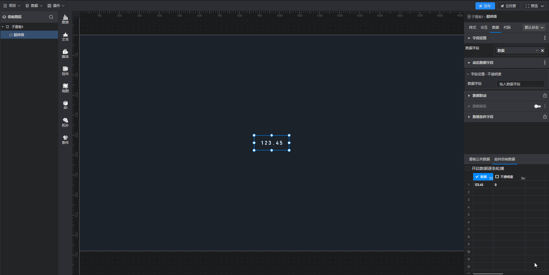 翻牌器组件与指标卡组件类似,同样是专门用于展示数字类型数据的一种预设样式。
