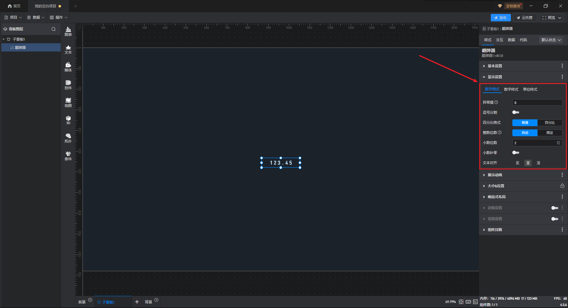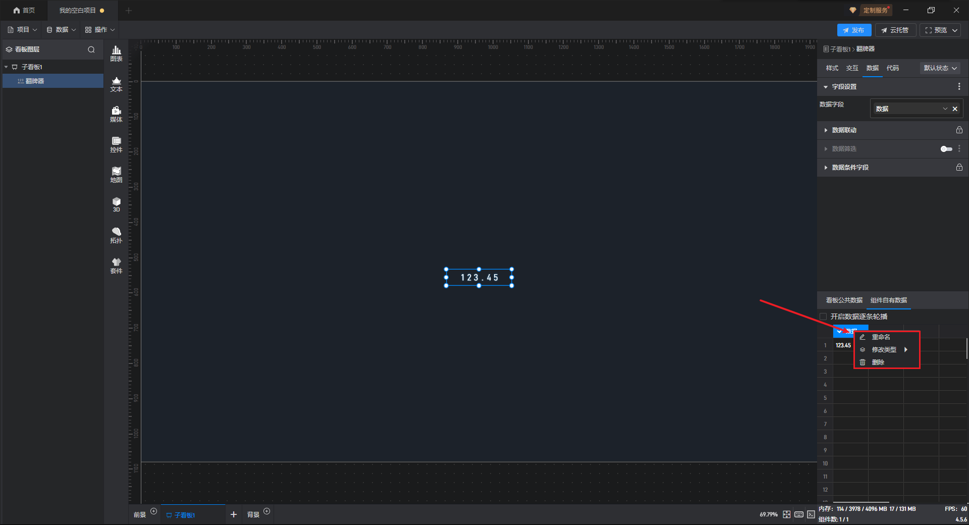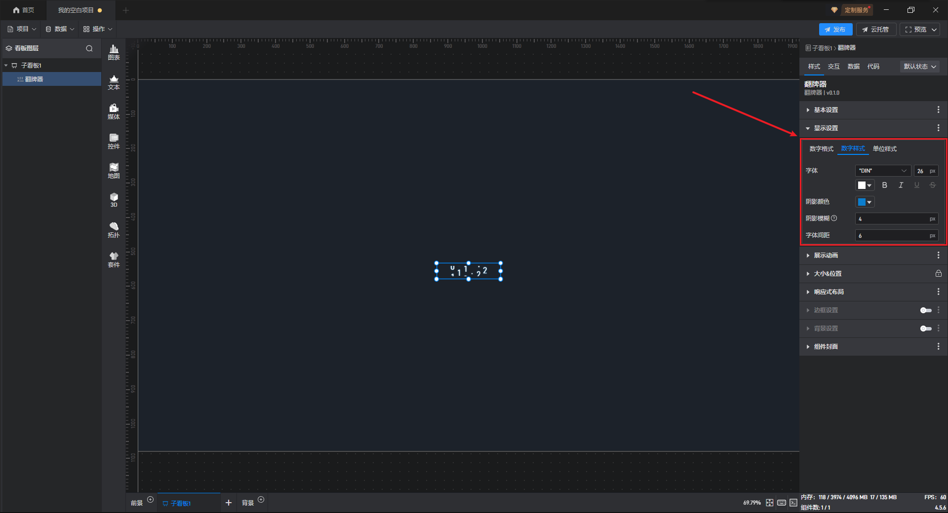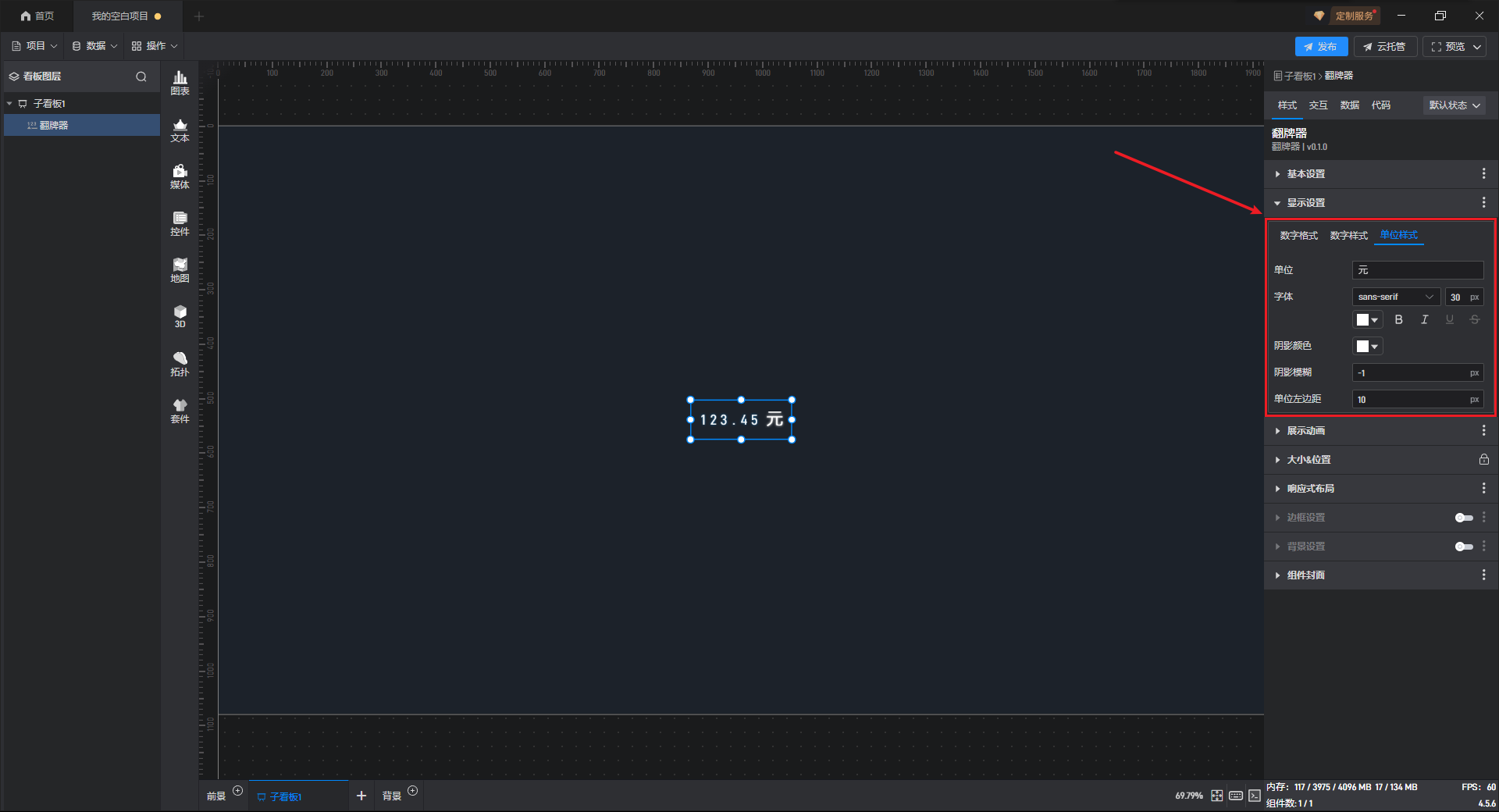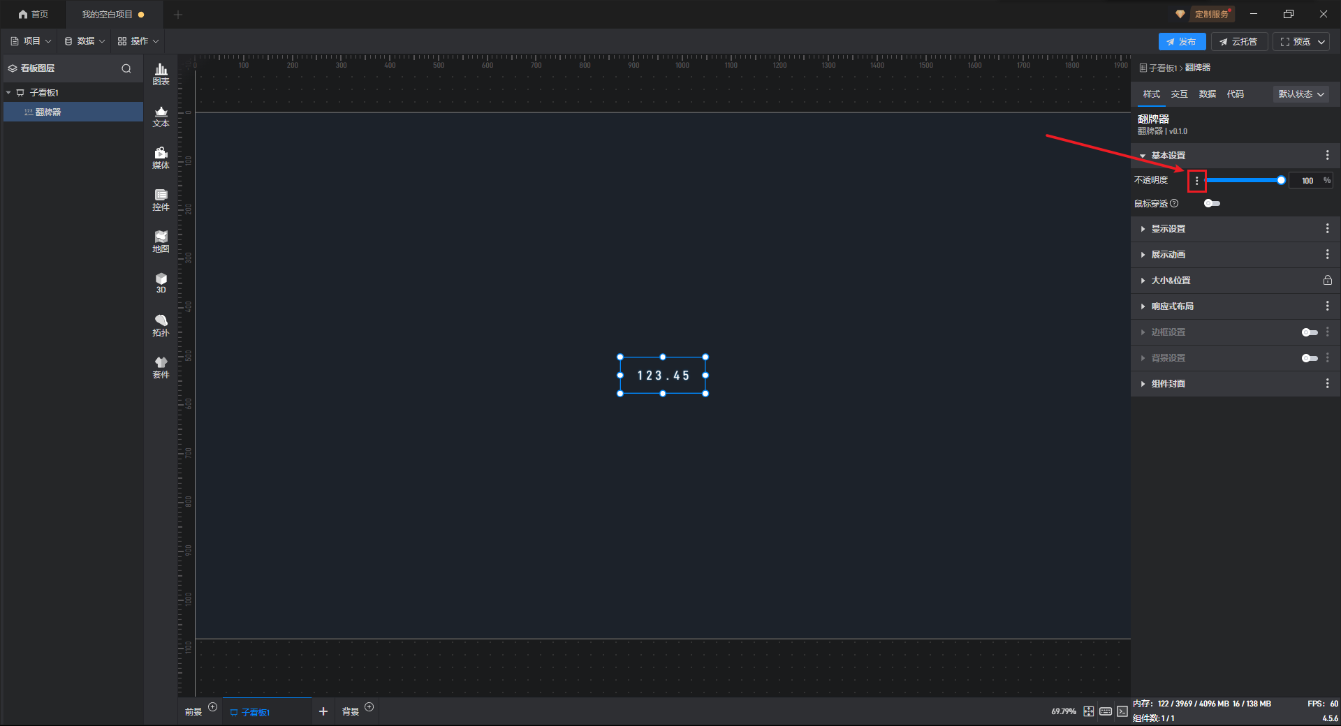 翻牌器组件与指标卡组件类似,同样是专门用于展示数字类型数据的一种预设样式。
