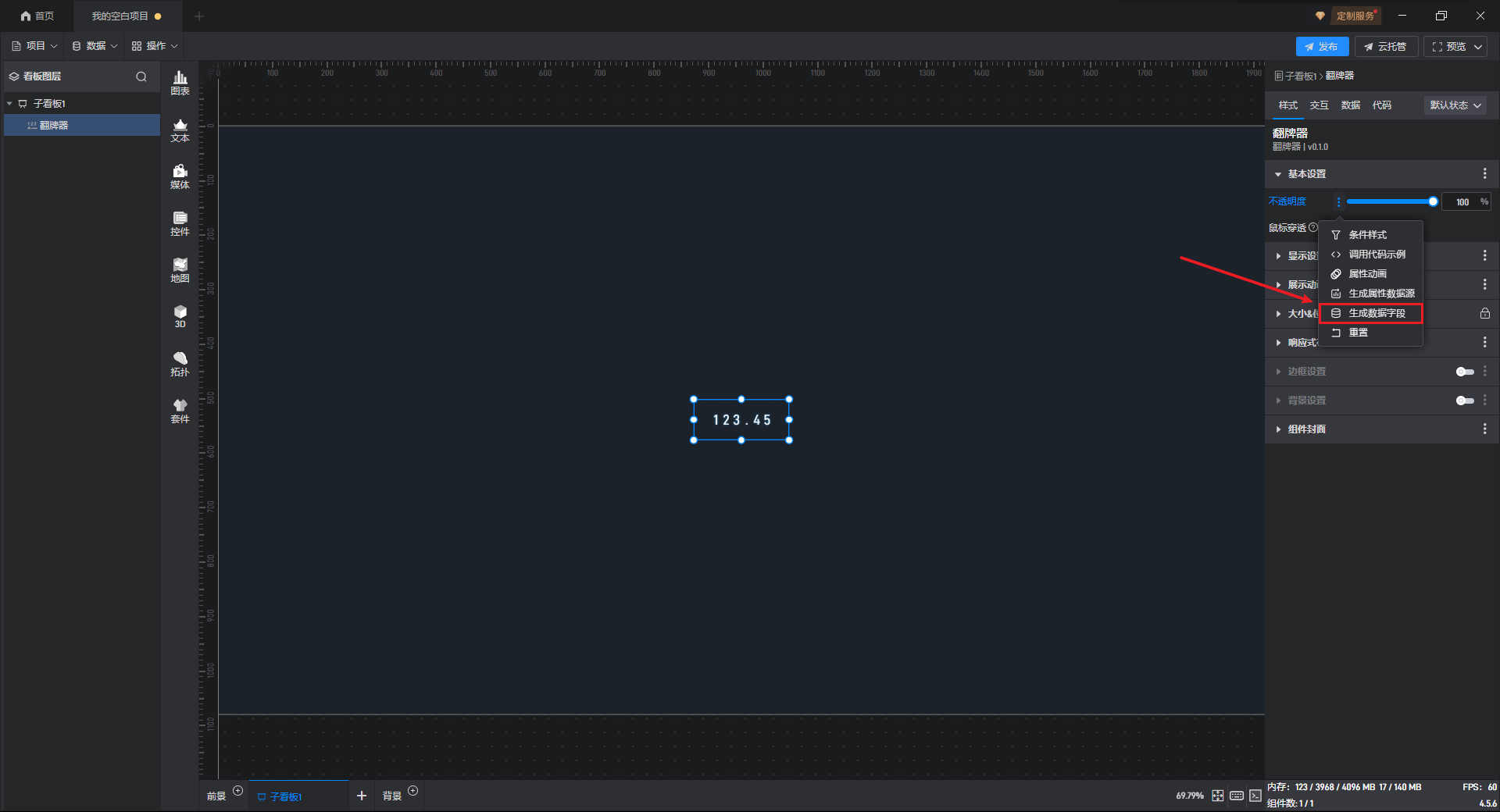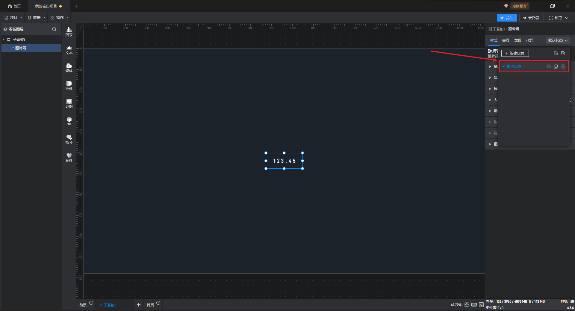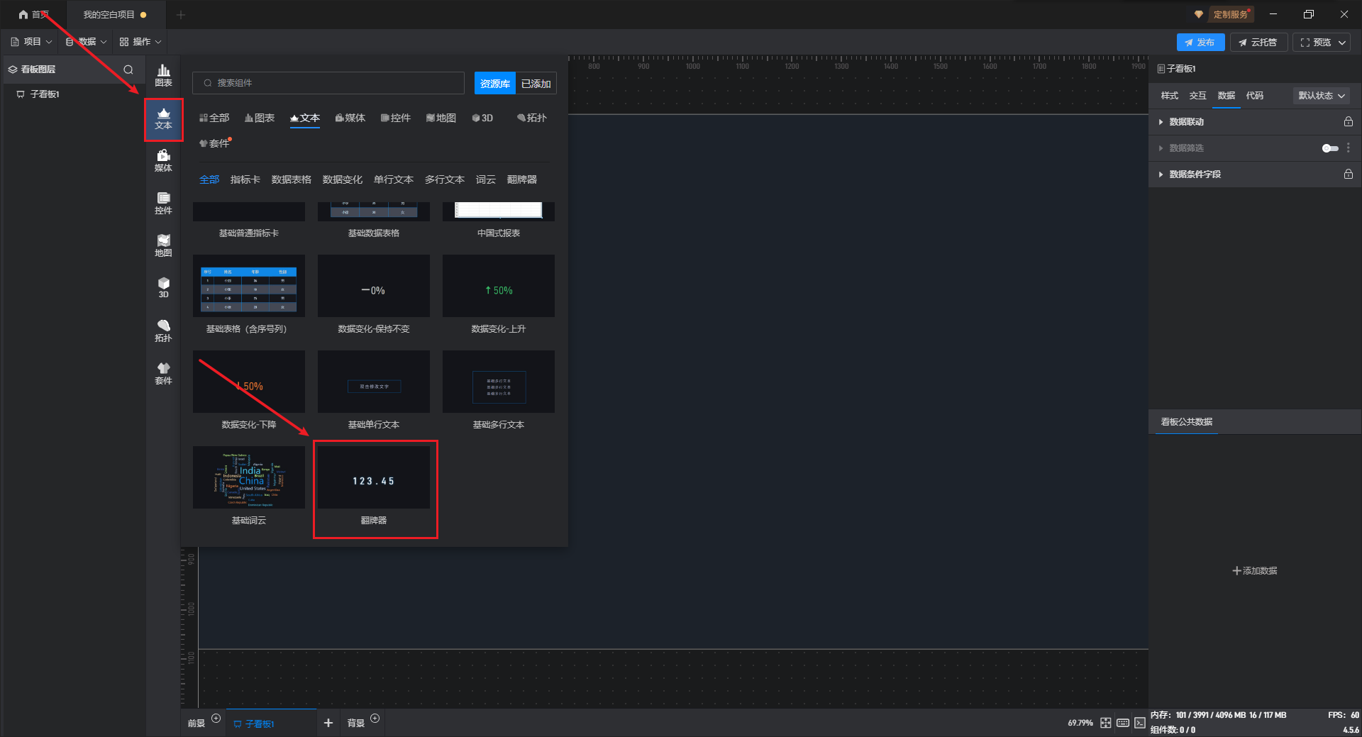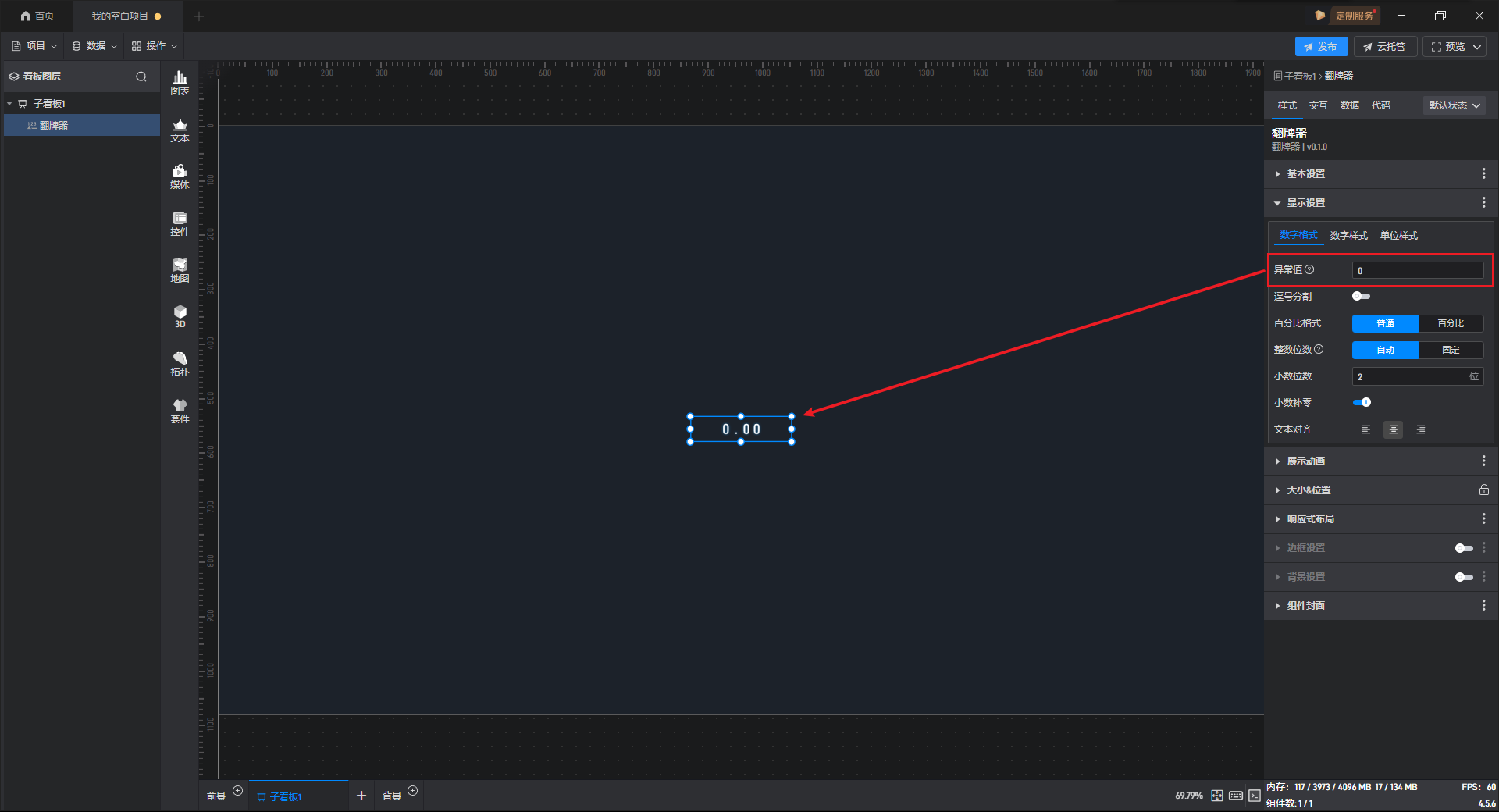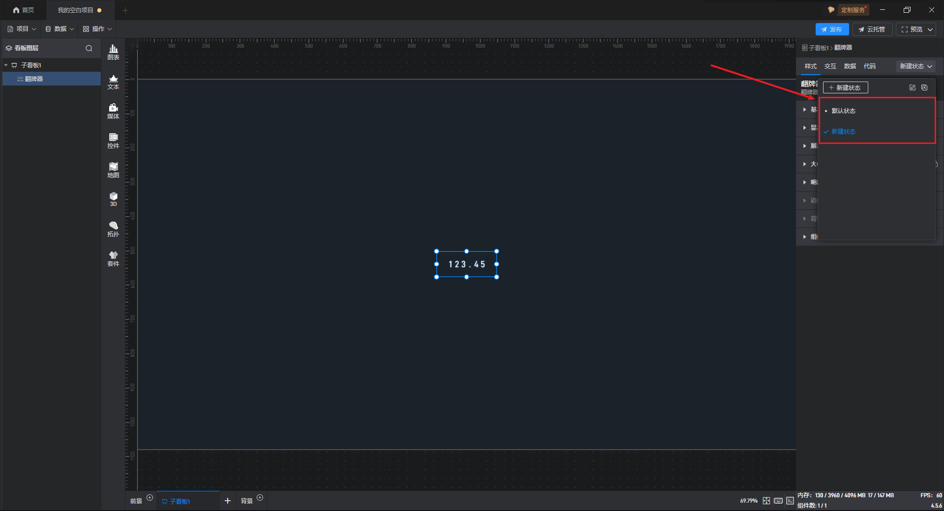翻牌器组件与指标卡组件类似,同样是专门用于展示数字类型数据的一种预设样式。