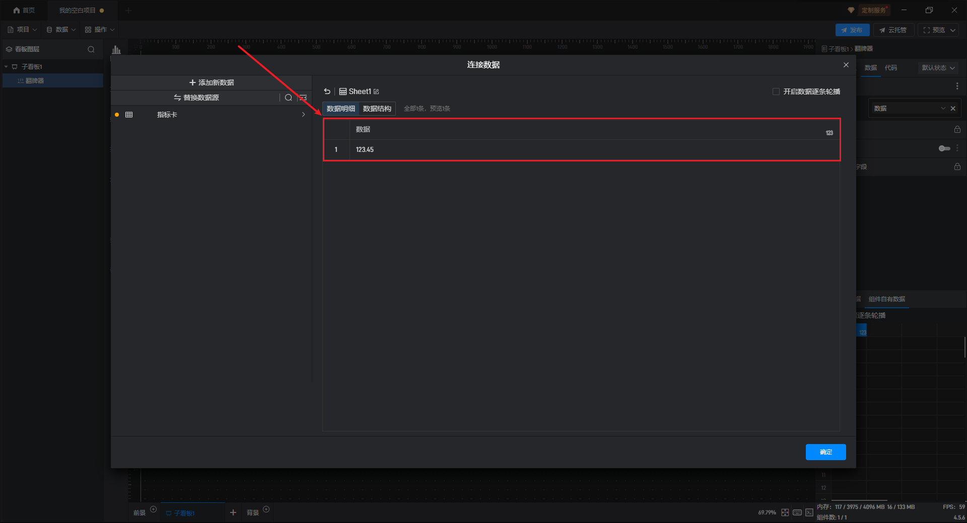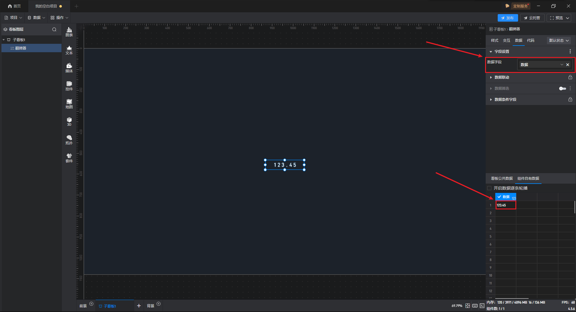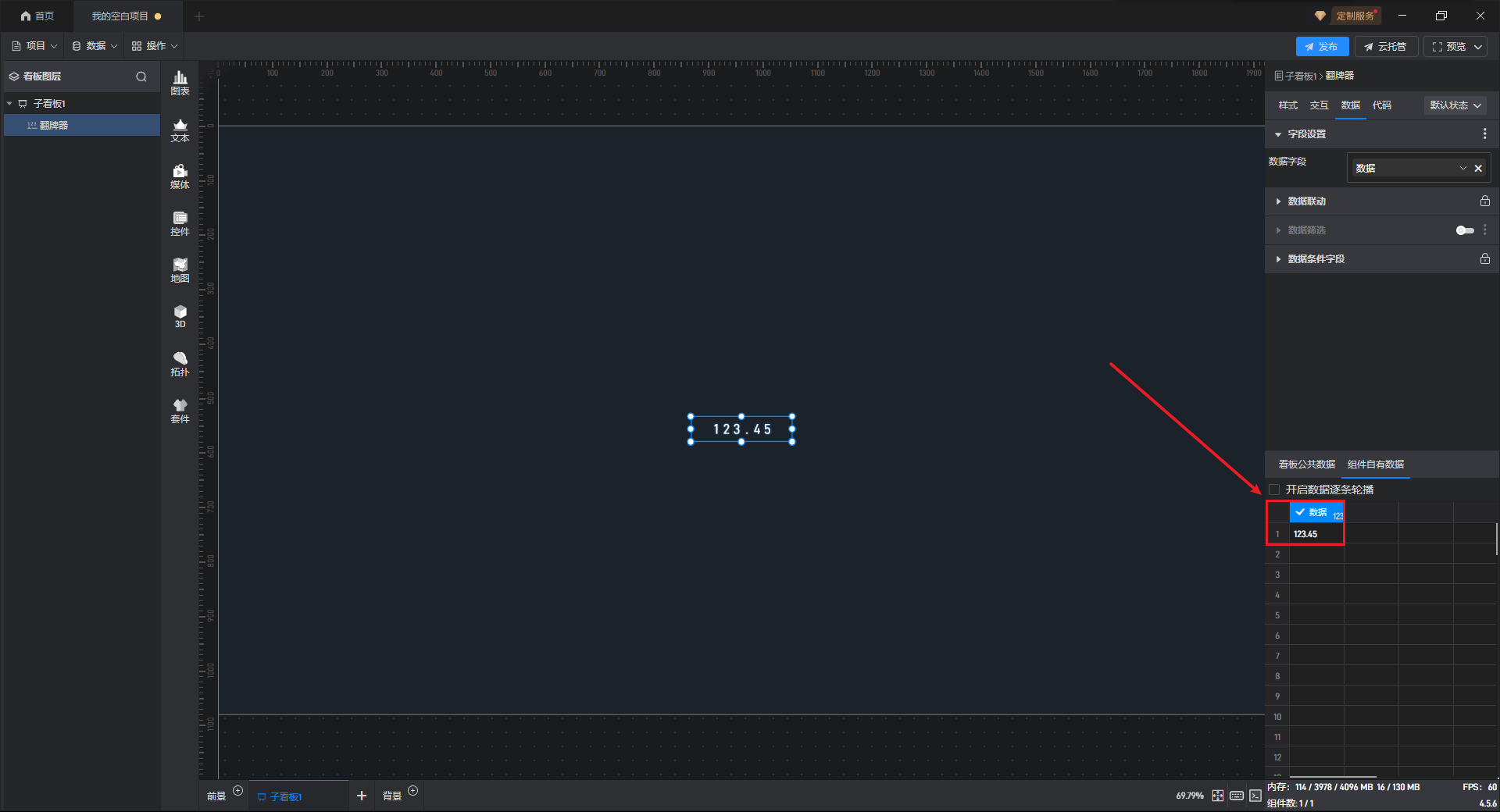在“数据”设置界面下方可以直接修改数据,组件中的数据也会实时更新。