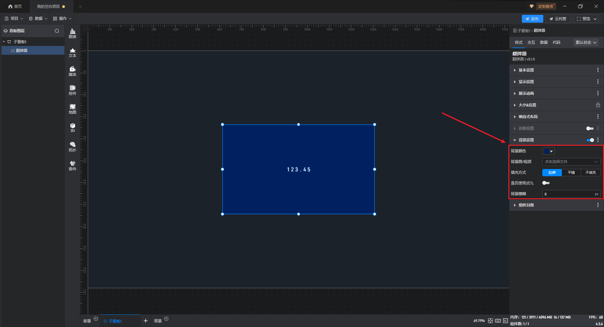 组件默认没有背景颜色,如果需要设置背景颜色,需要先开启“背景设置”项按钮。