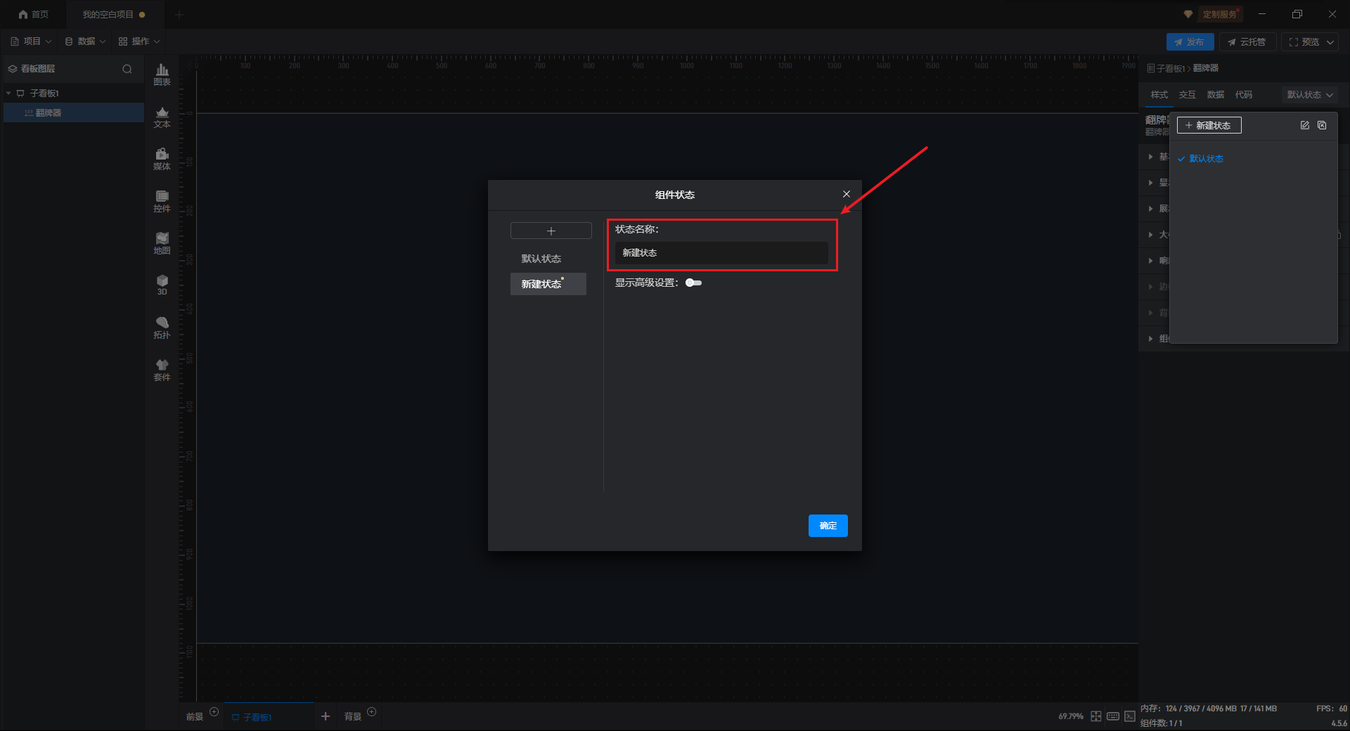 点击右上角的添加状态按钮可以添加一个新的组件状态。