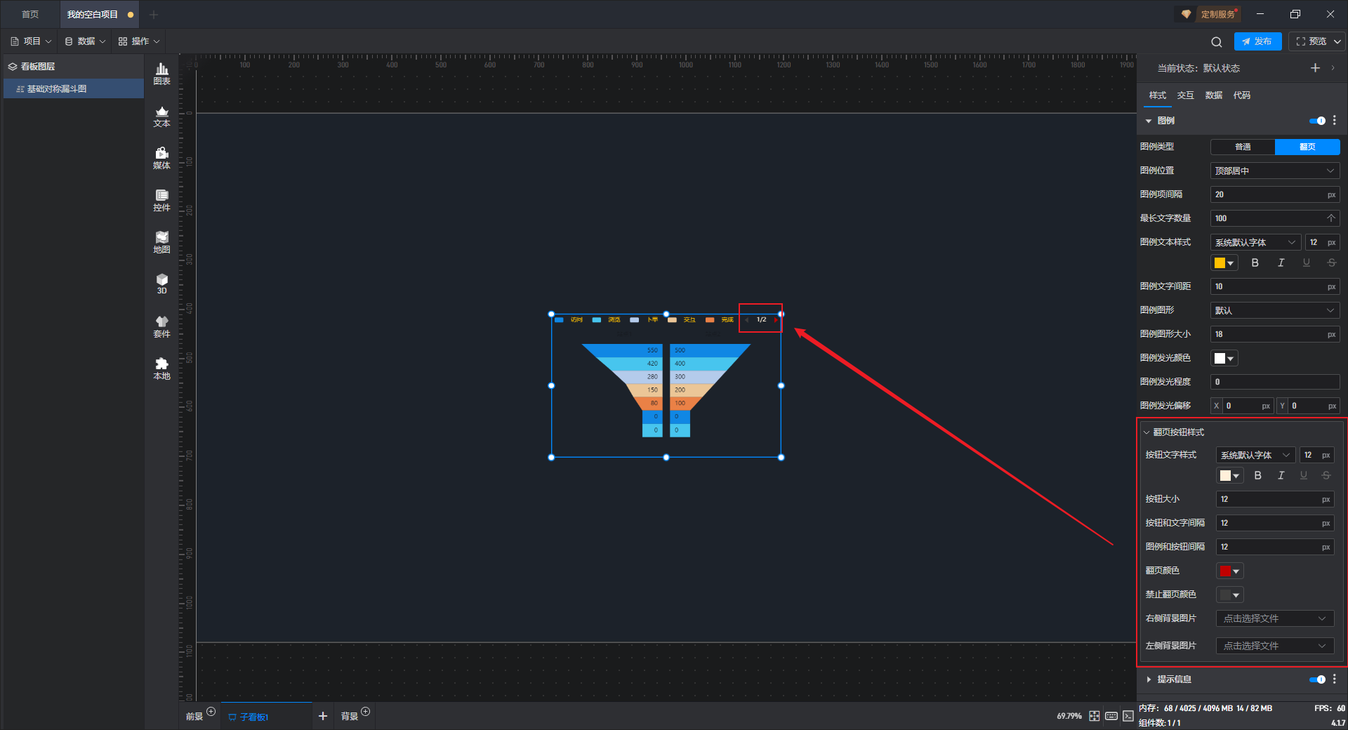 基础对称漏斗图 翻页按钮样式,如下图所示: