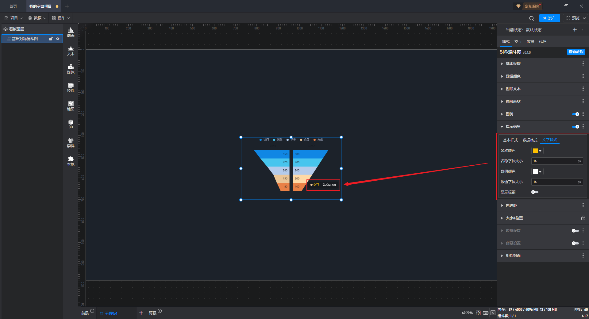 基础对称漏斗图 提示信息文字样式,如下图所示: