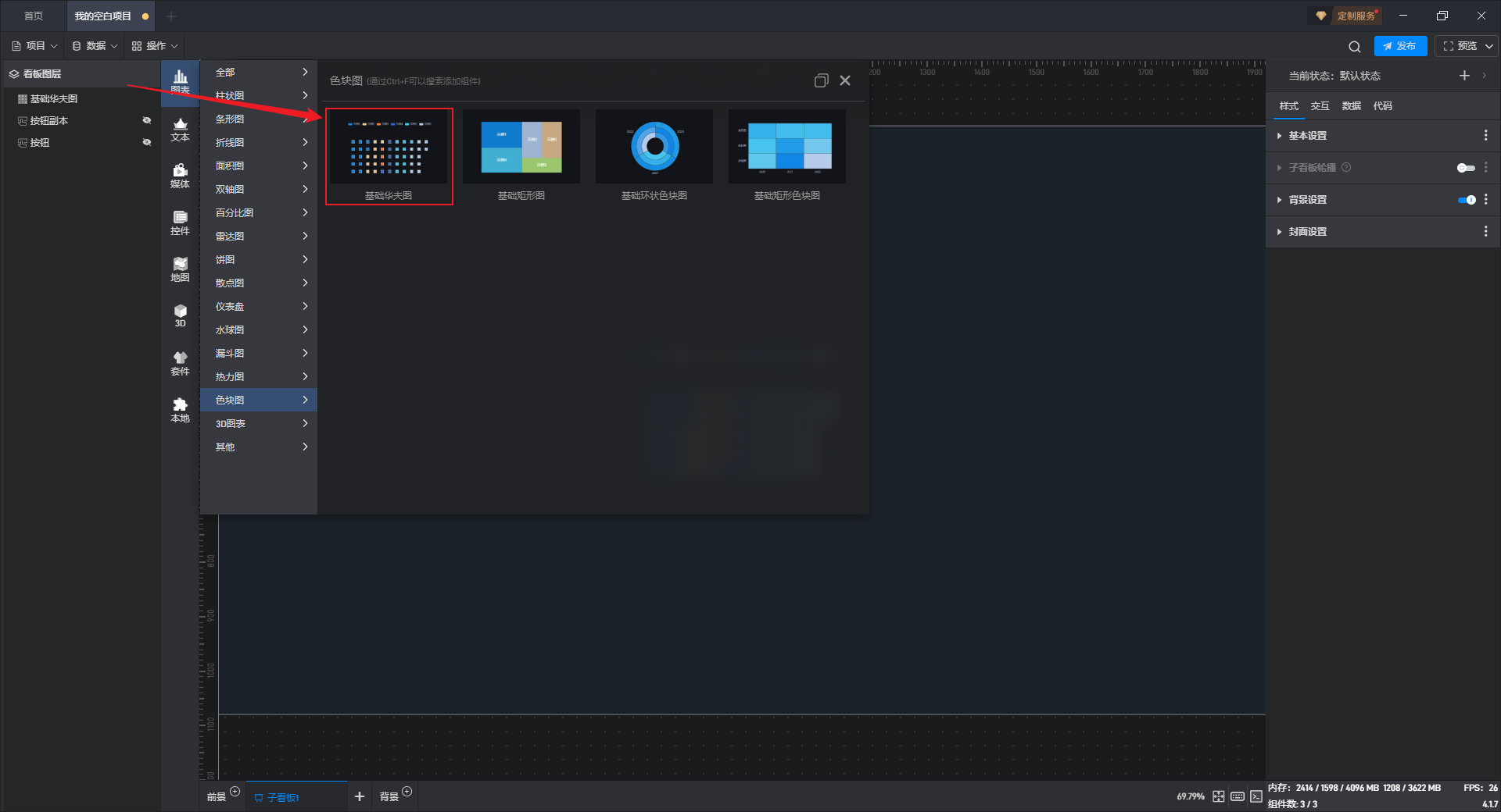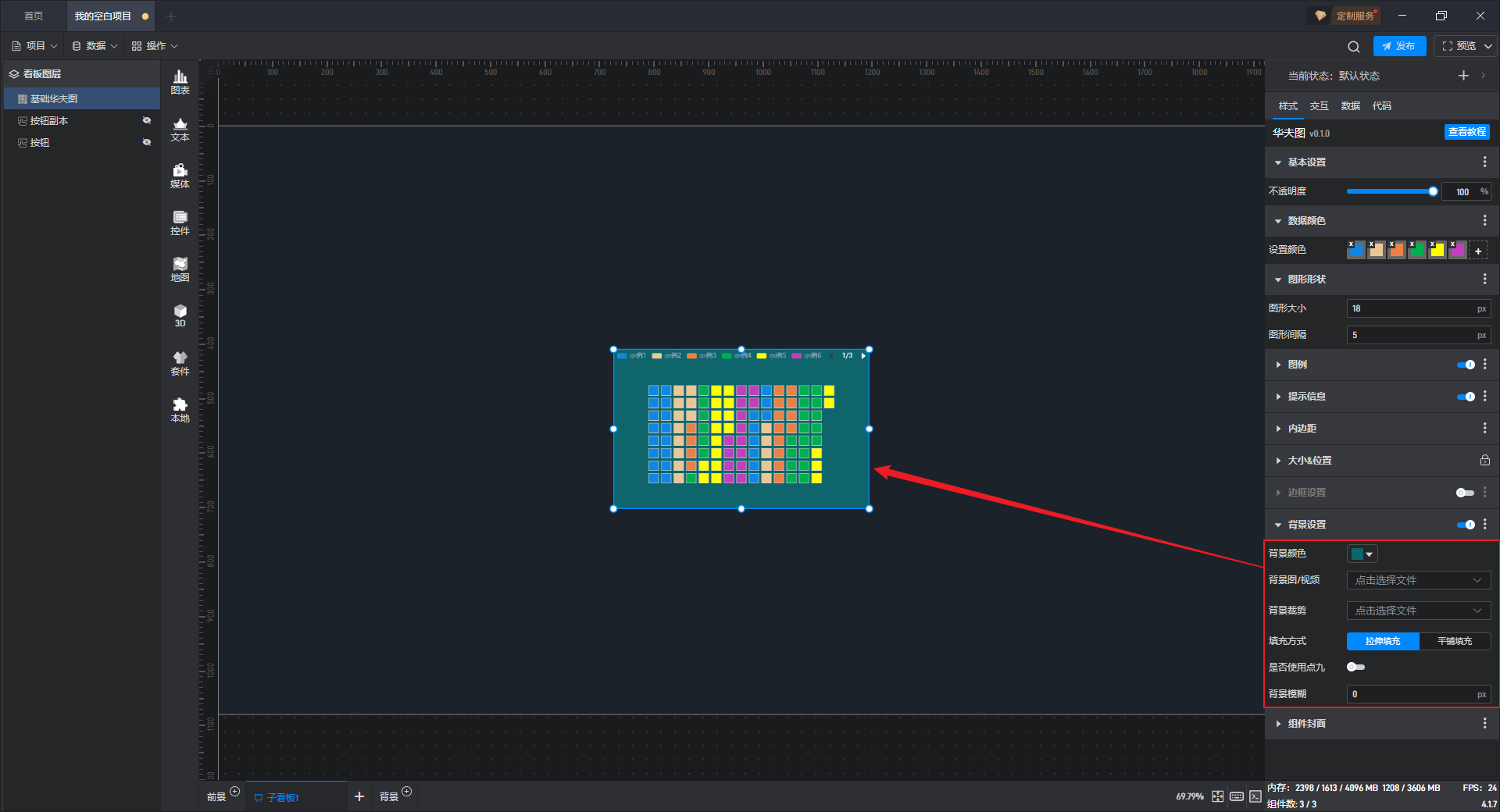 组件默认没有背景颜色,如果需要设置背景颜色,需要先开启“背景设置”项按钮。