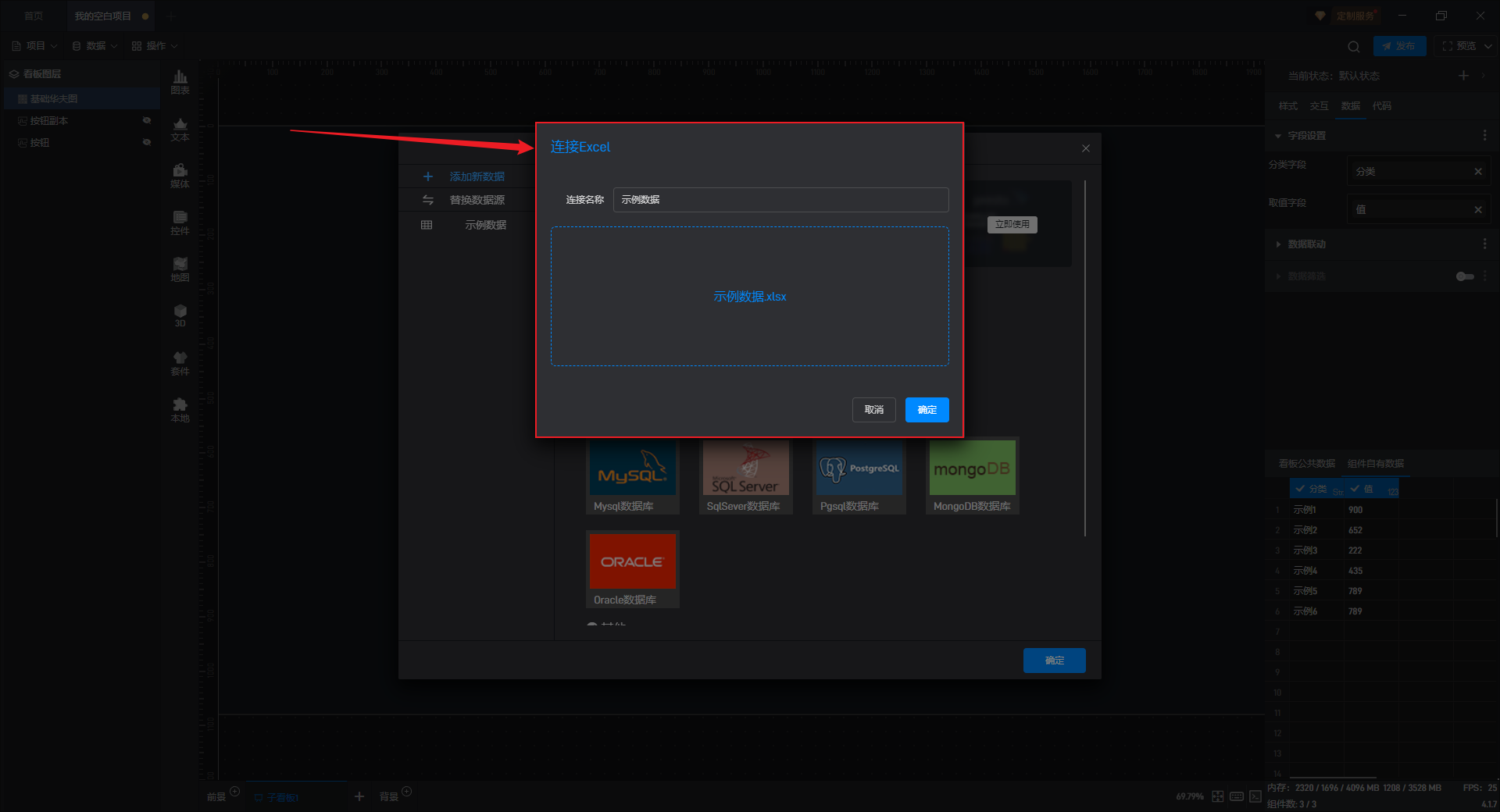 下面以添加Excel 数据源为例:(更多数据源添加方式请参看教程:连接数据)