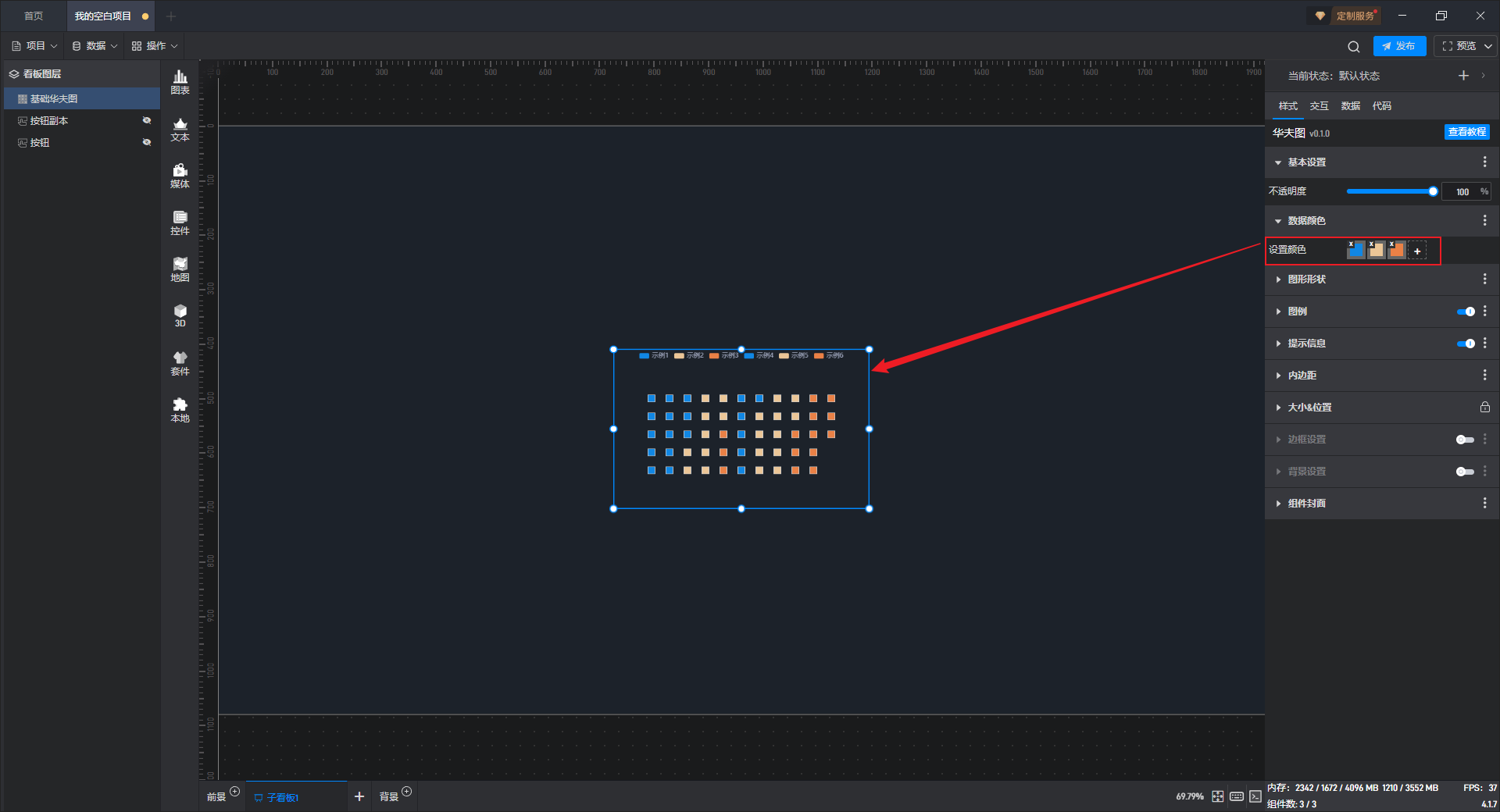 每个值都可以单独设置颜色,颜色是按照从左到右的顺序进行设置的,从下图中可以看出,组件值根据占比依次展示设置颜色。