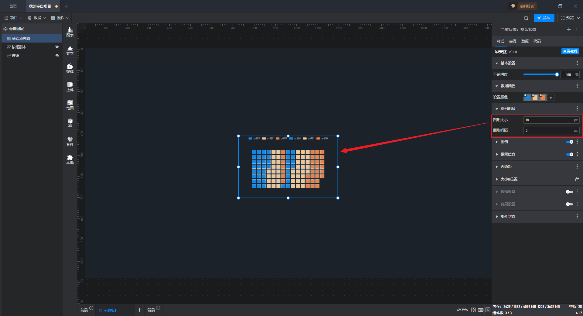 | 图形大小 | 自定义设置华夫图中色块的图形大小,默认大小为“13px”。 |