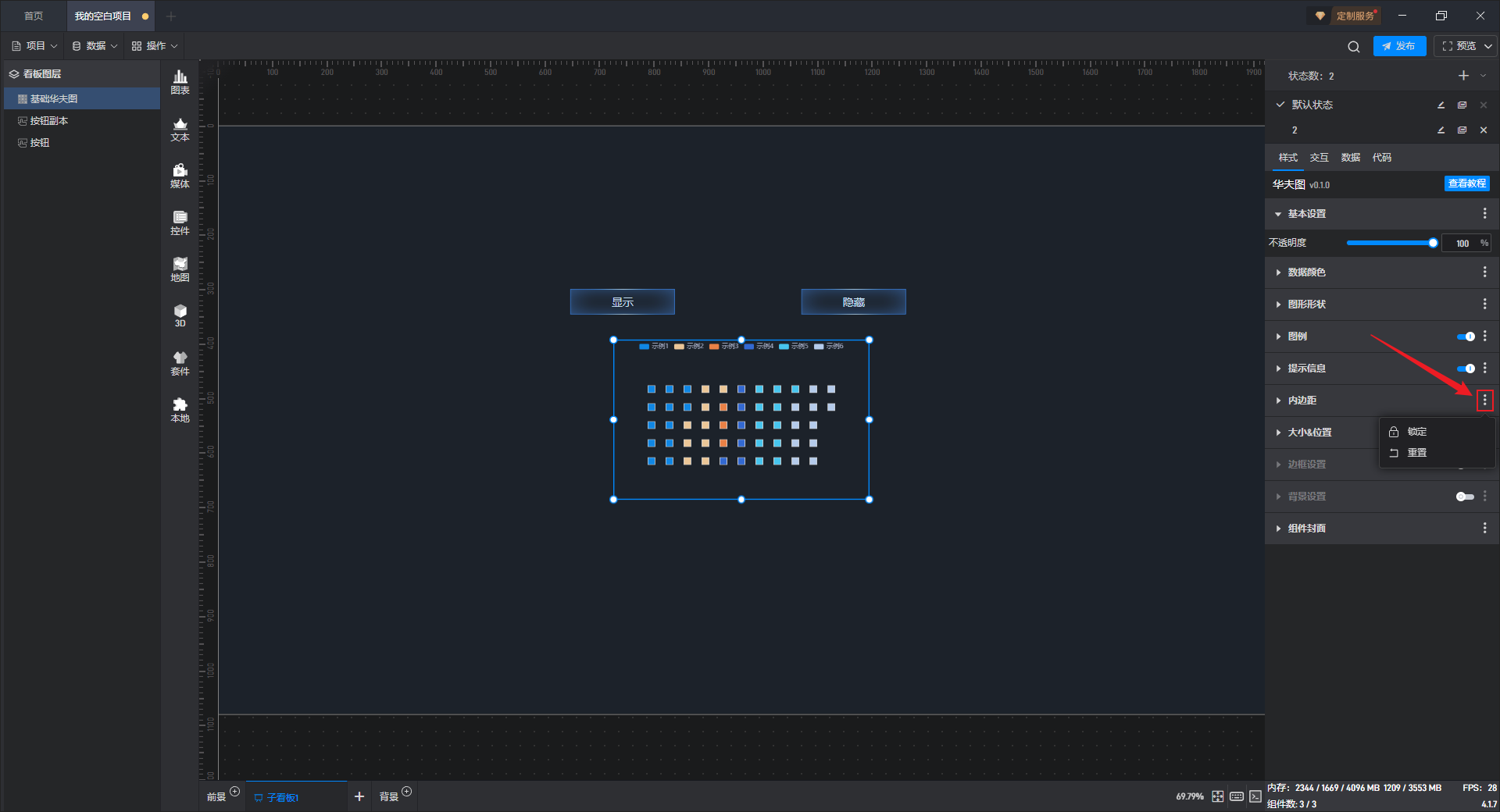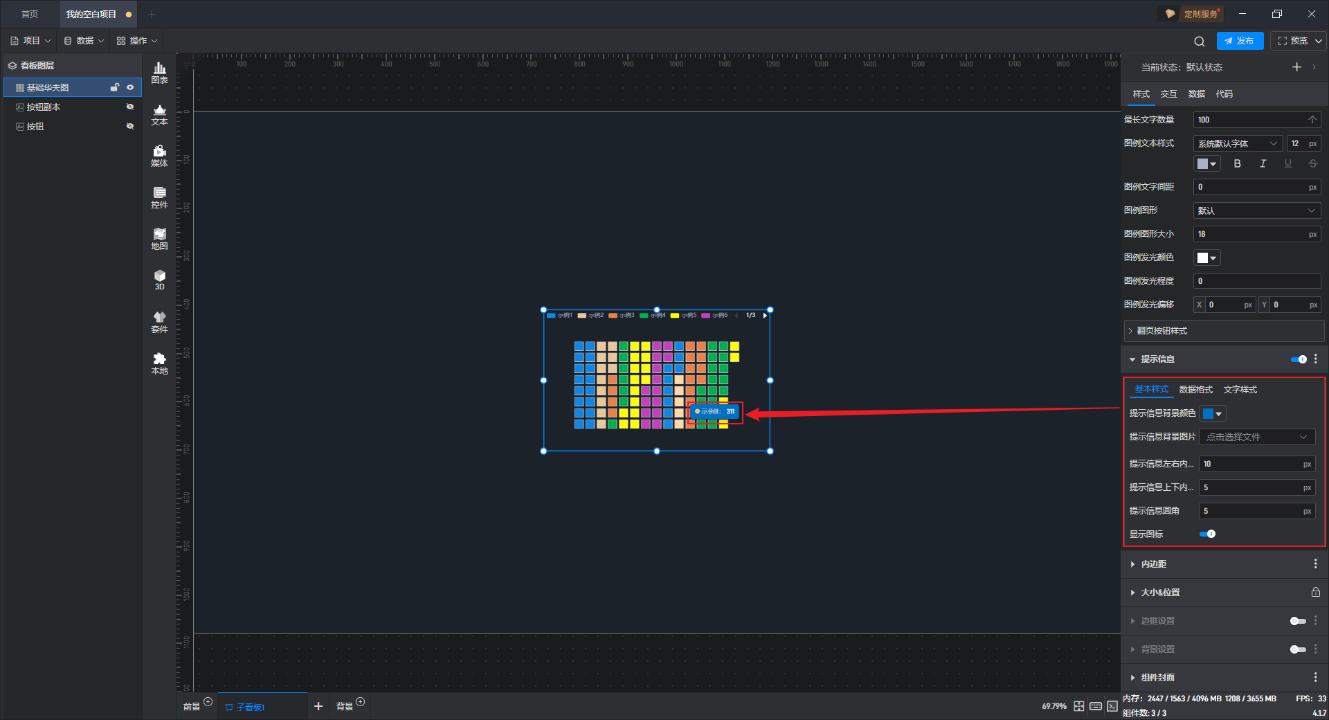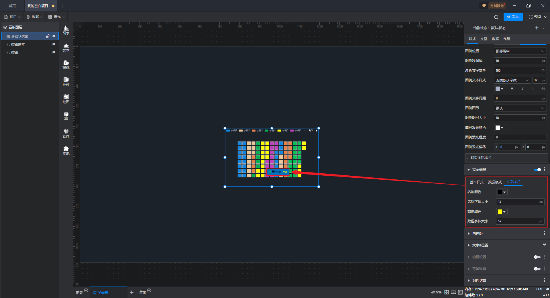 | 图例和按钮间隔 | 自定义设置图例和按钮之间的距离,默认间隔为“12px”。 |