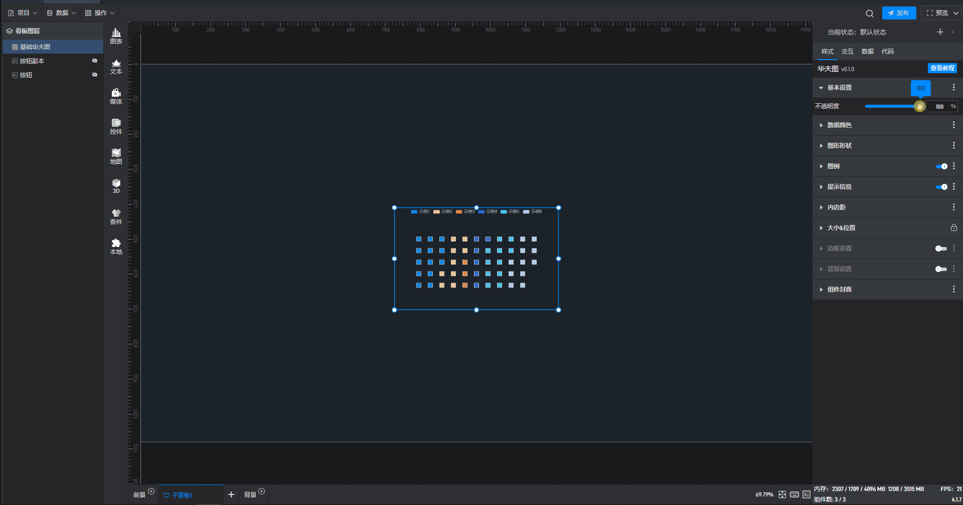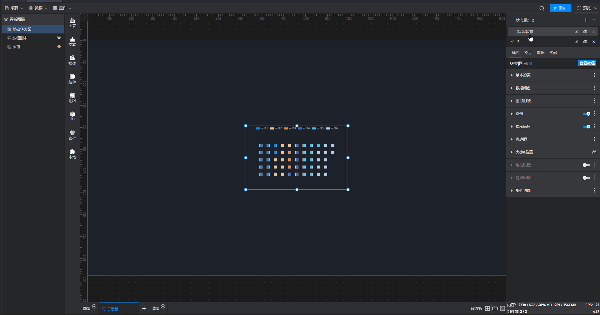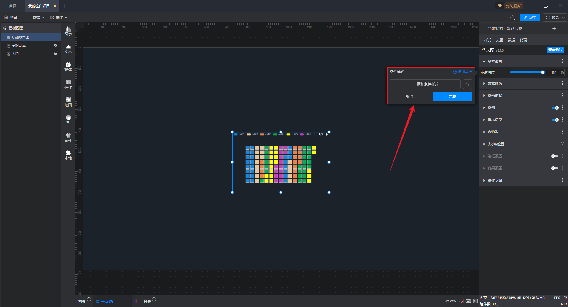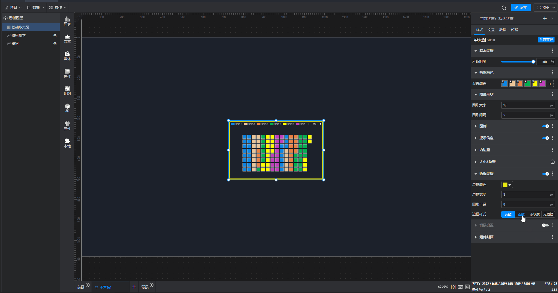 所谓固定样式,就是设置完之后一直保持的组件样式,这是和 3.2 章节中的条件样式相对应的,条件样式就是根据数据的变化改变组件的样式。