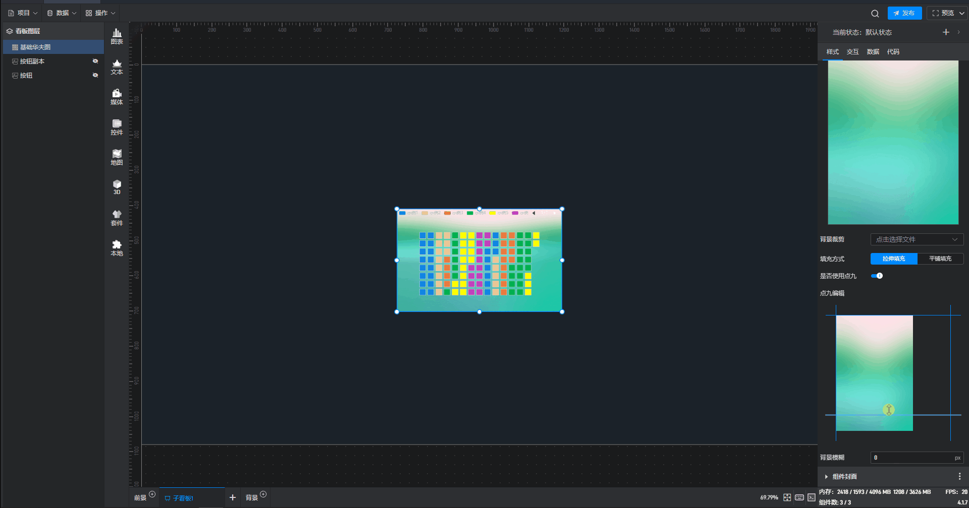 | 背景图/视频 | 可在此处添加本地图片或视频,充当组件背景。 |