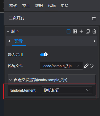 }NumberText 挂载到文本组件上,而 Random 挂载到随机按钮上,然后设置文本这边的二开生成的元素设置项改为随机按钮: