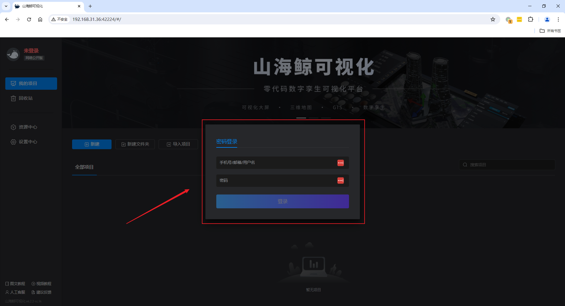 开通山海鲸可视化私有云服务后,可使用项目协同编辑功能,制作复杂项目时可多人同时对项目进行编辑,从而提高项目效率。具体操作步骤如下所示: