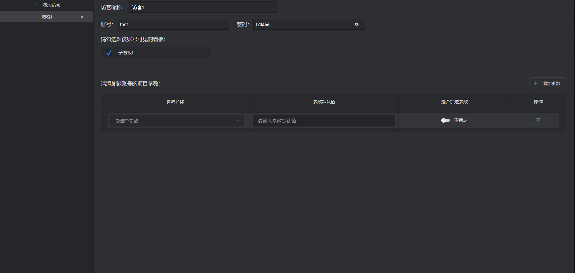 在这里可以设置当前访客账号可以查看的子看板内容,勾选后代表可以查看,否则就无法查看。