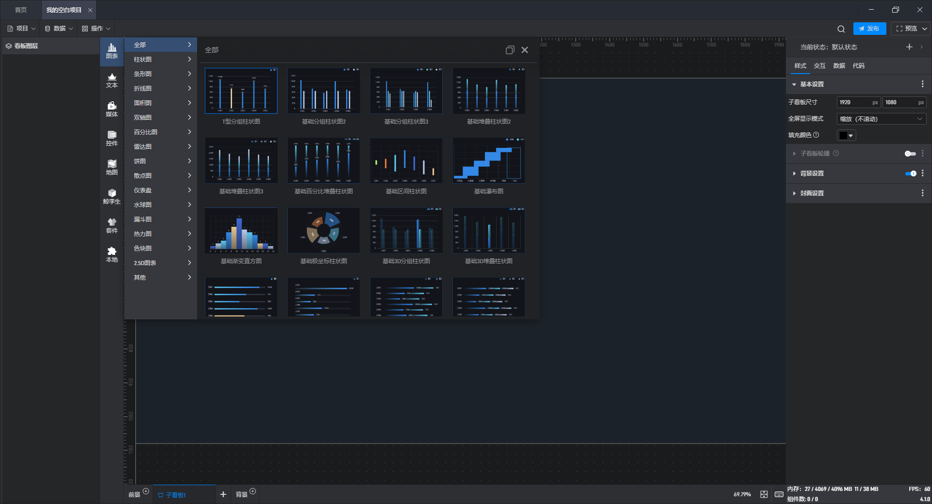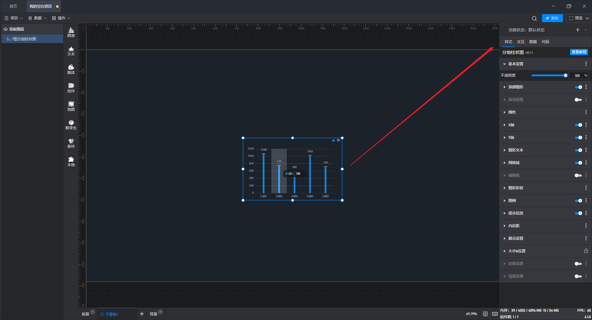 大屏的样式是由背景和组件组成的,在如何设置大屏的样式中我们已经介绍了画布该如何设置,本文主要介绍一下组件的编辑。
