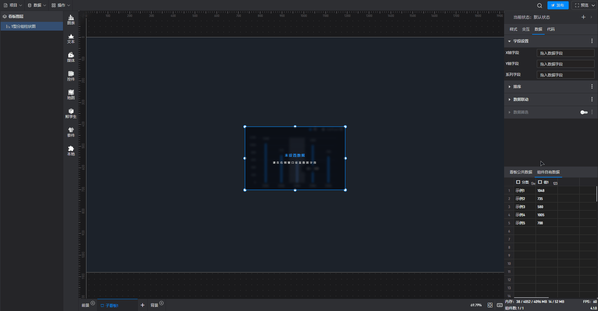 即鼠标点击选中数据,软件会根据数据特征自动填充到当前组件的数据设置中。