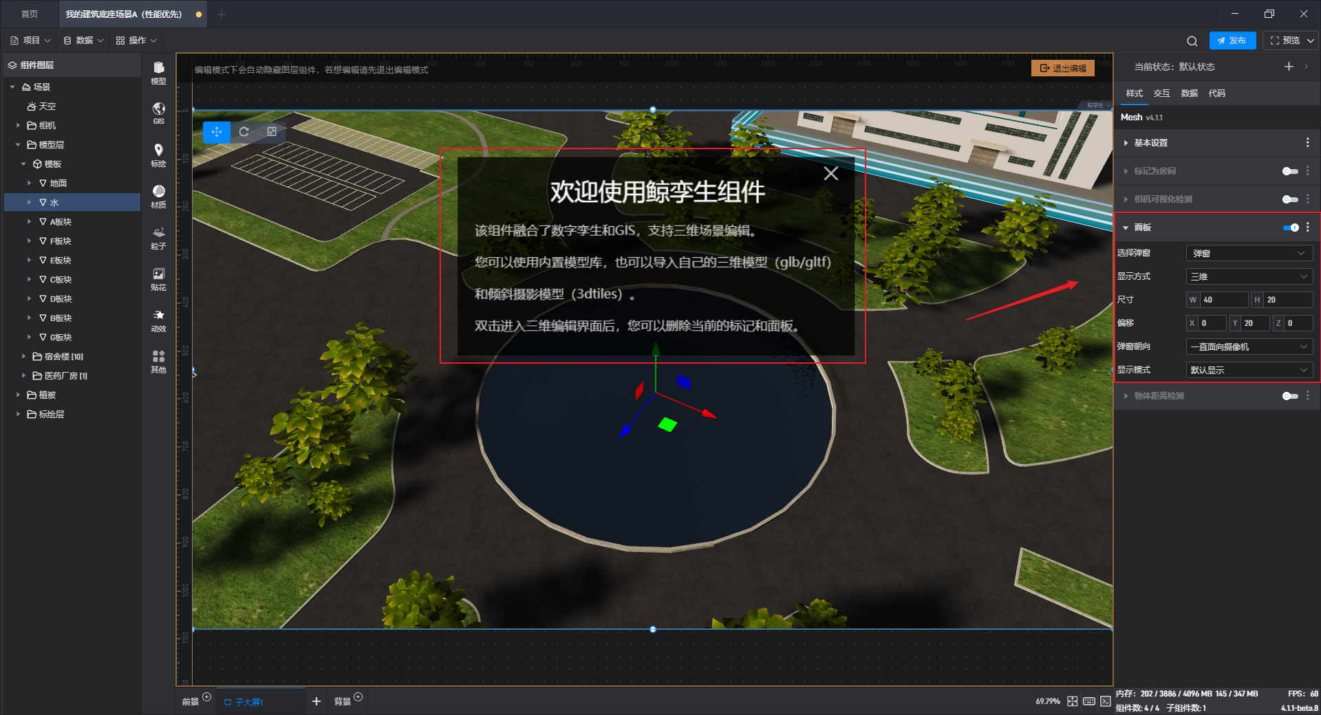 | 偏移 | 模型上的弹窗与该模型具有一定的距离,这个距离可以根据需求来设定。 |